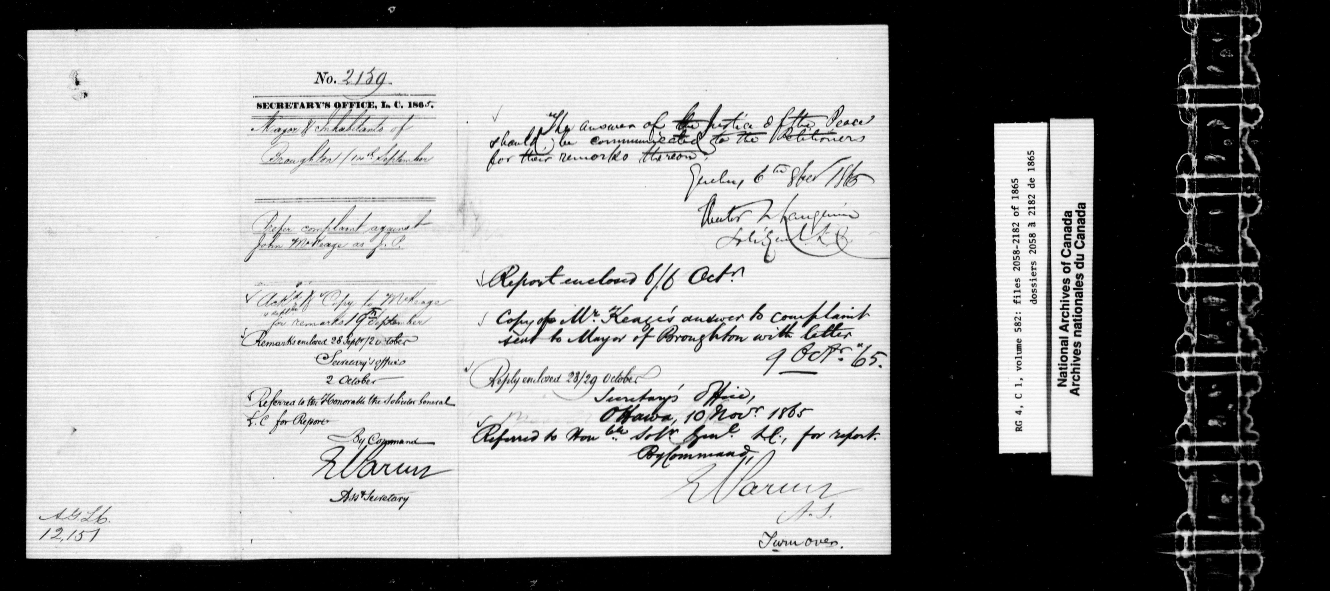 Canada East : Provincial Secretary numbered correspondence files, 1839-1867 - 2799