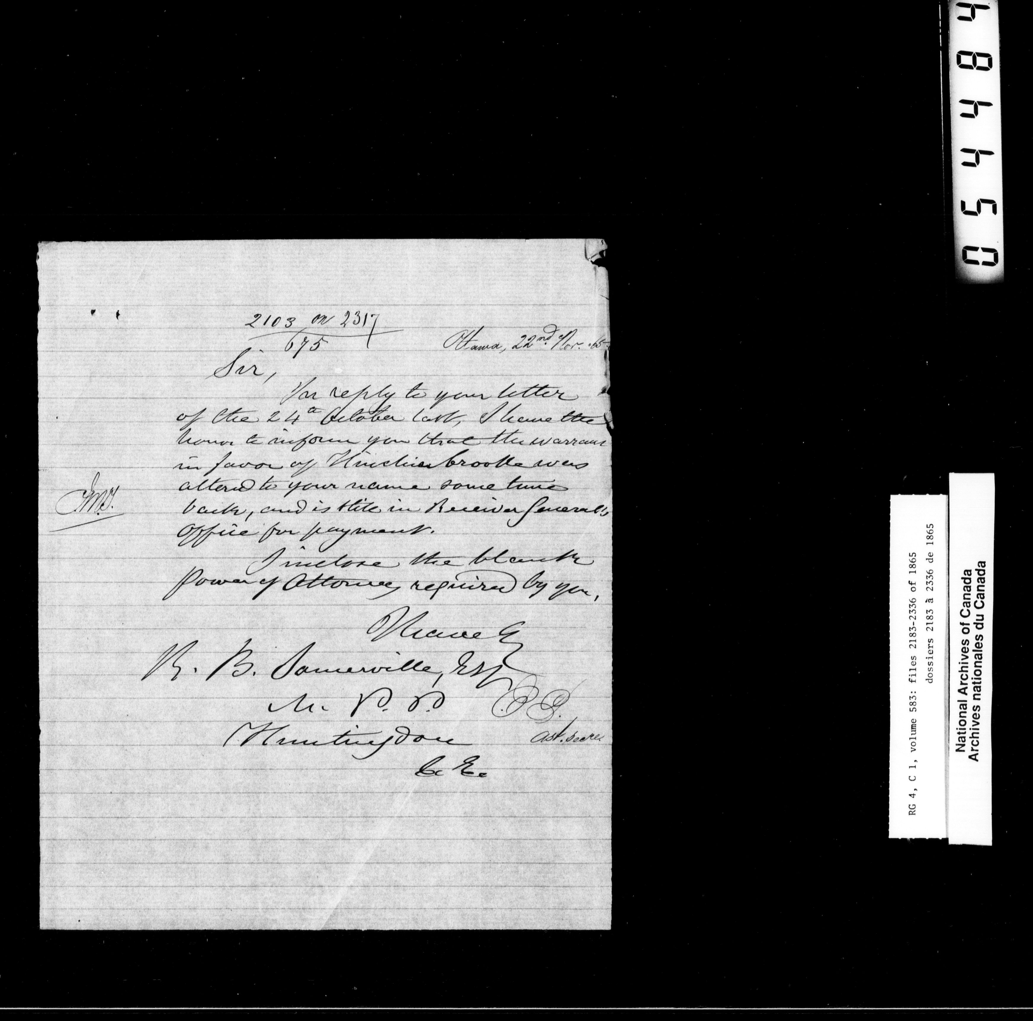 Canada East : Provincial Secretary numbered correspondence files, 1839-1867 - 2800