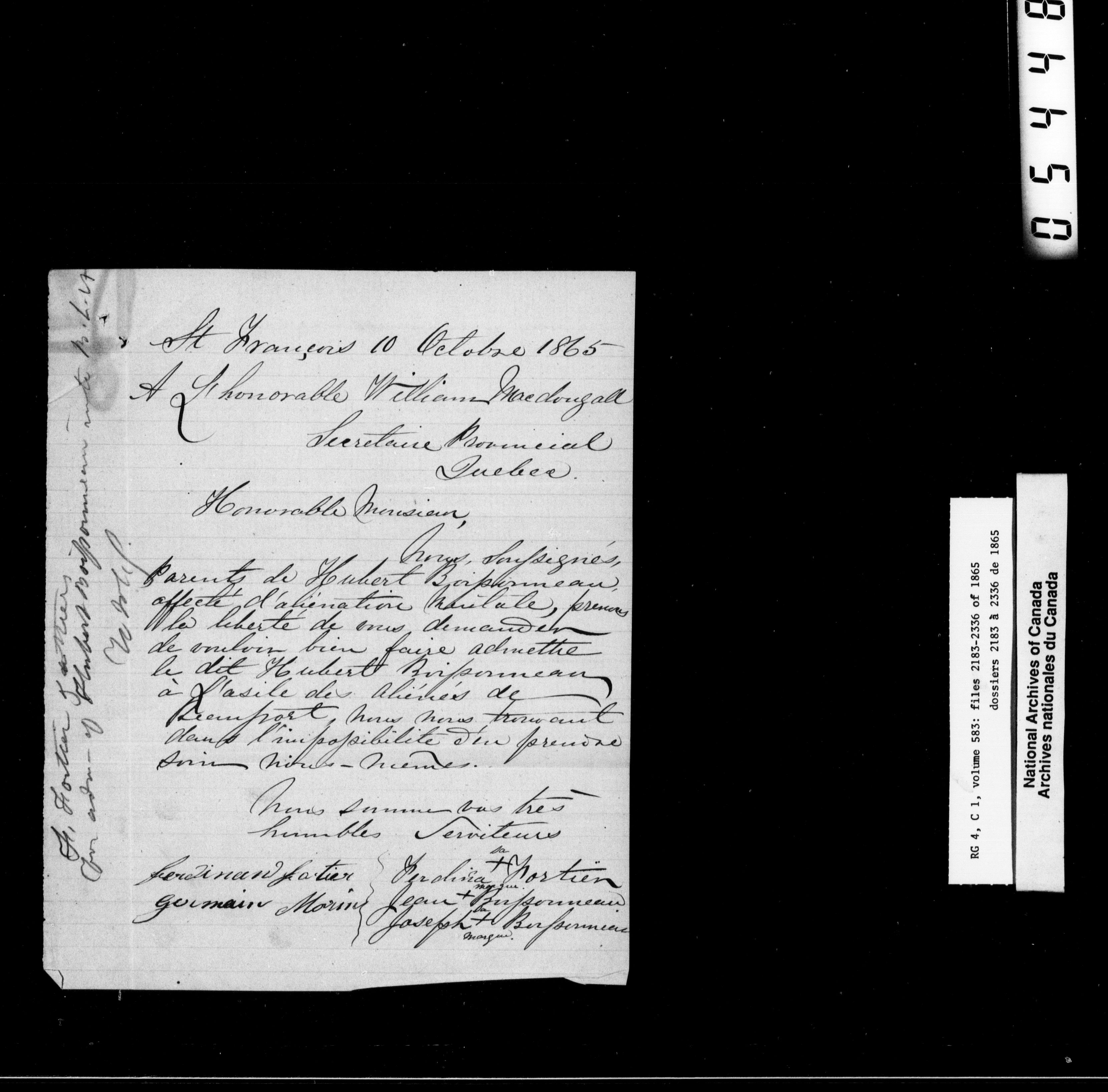 Canada East : Provincial Secretary numbered correspondence files, 1839-1867 - 2800