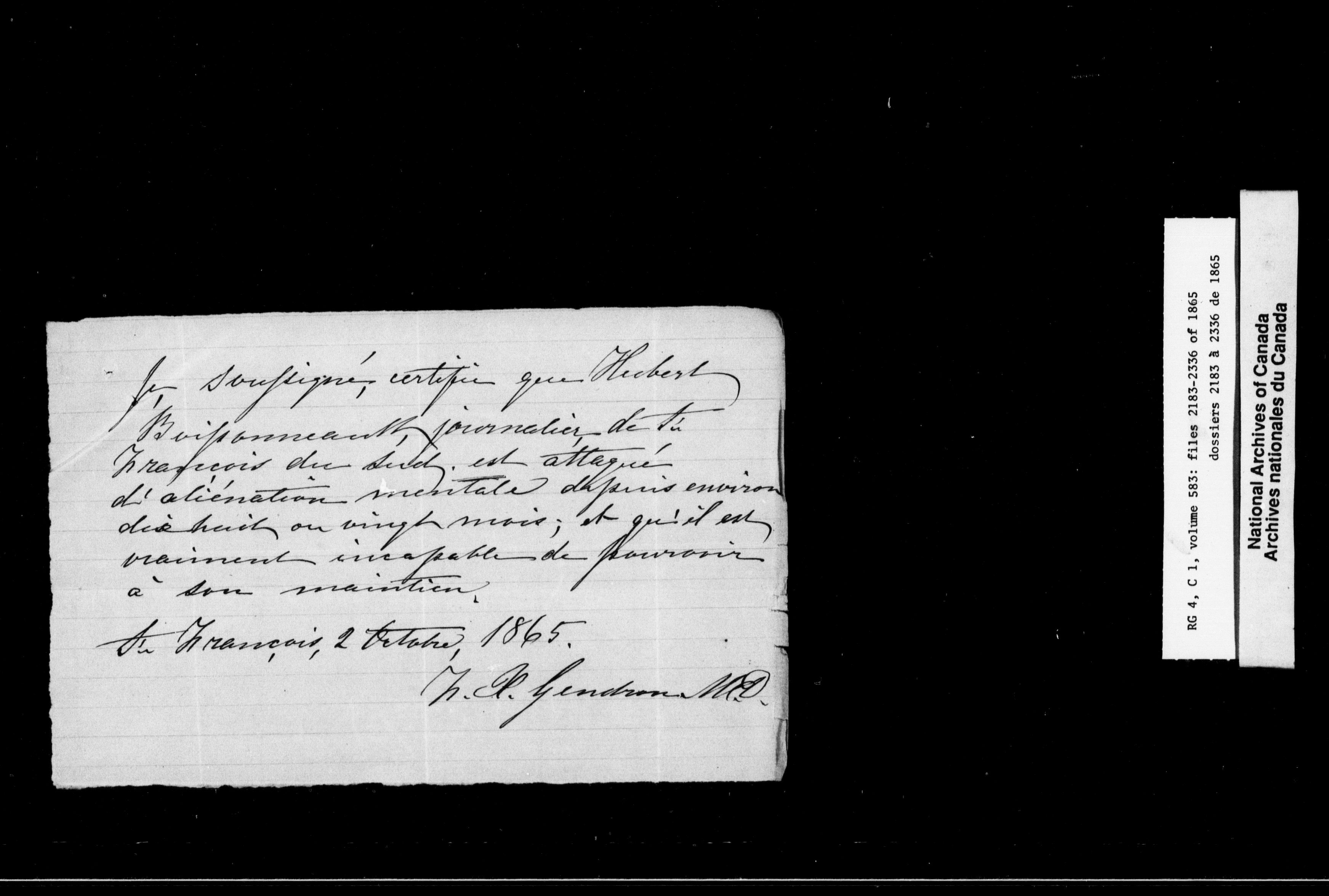 Canada East : Provincial Secretary numbered correspondence files, 1839-1867 - 2800