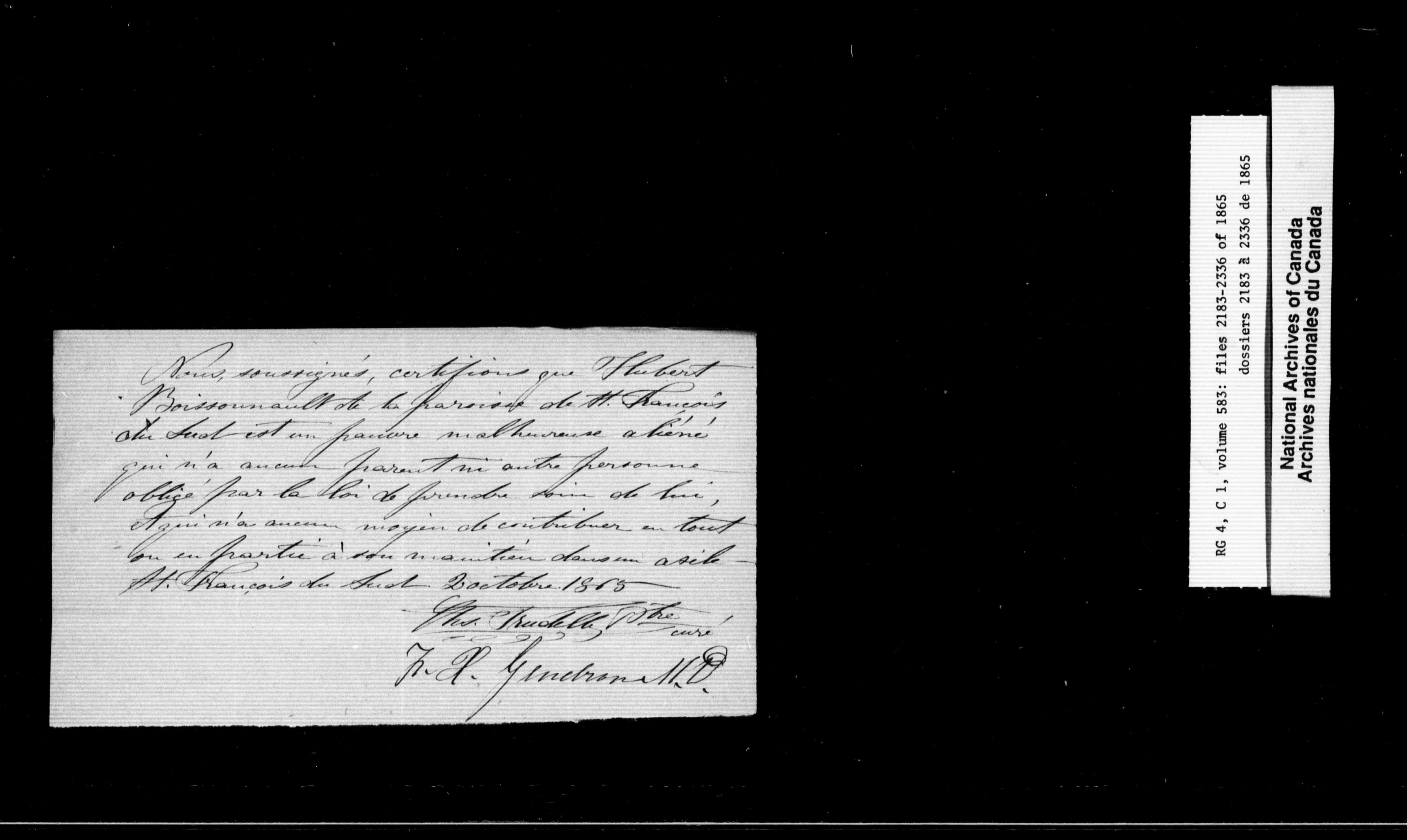 Canada East : Provincial Secretary numbered correspondence files, 1839-1867 - 2800