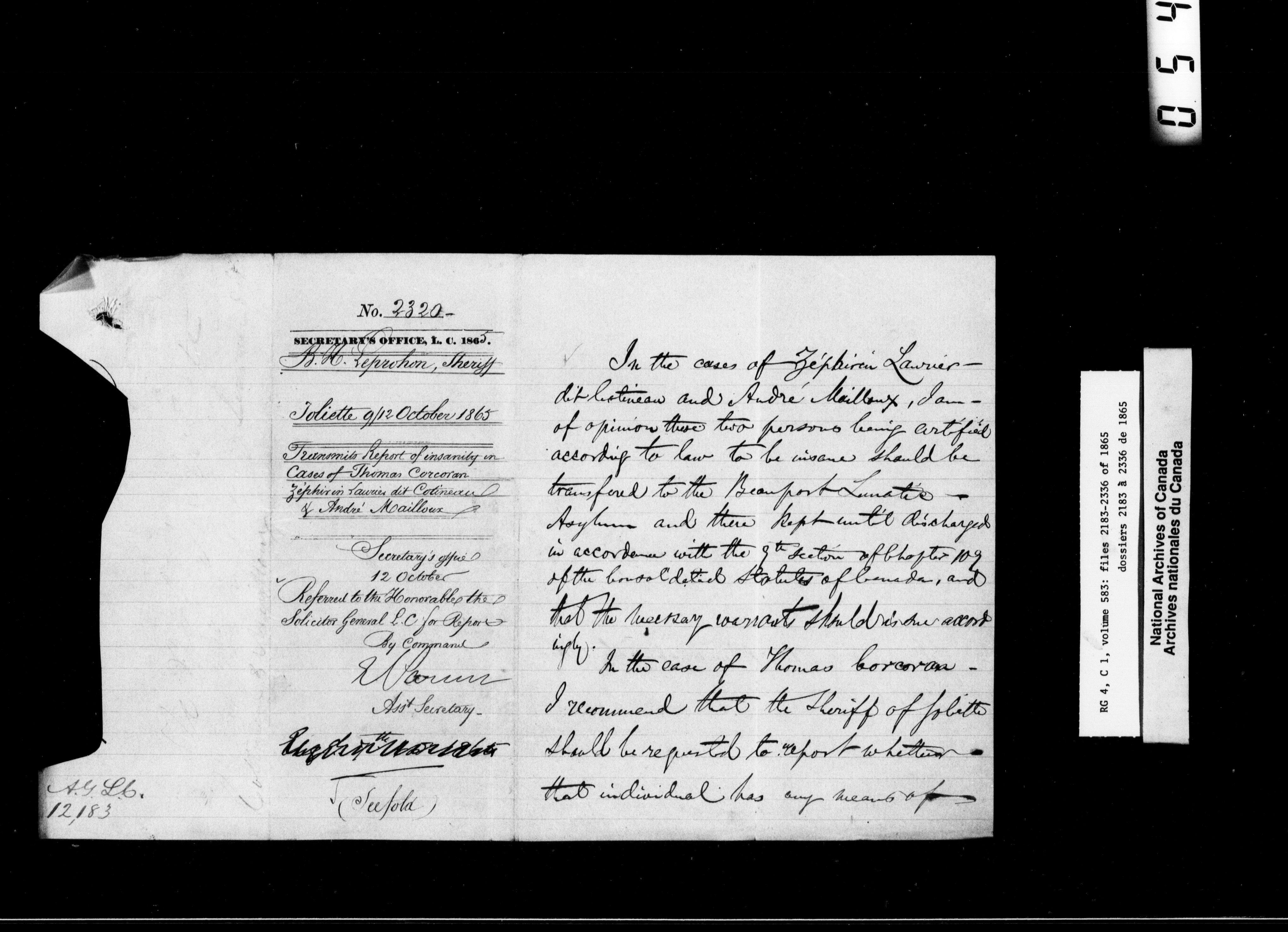Canada East : Provincial Secretary numbered correspondence files, 1839-1867 - 2800