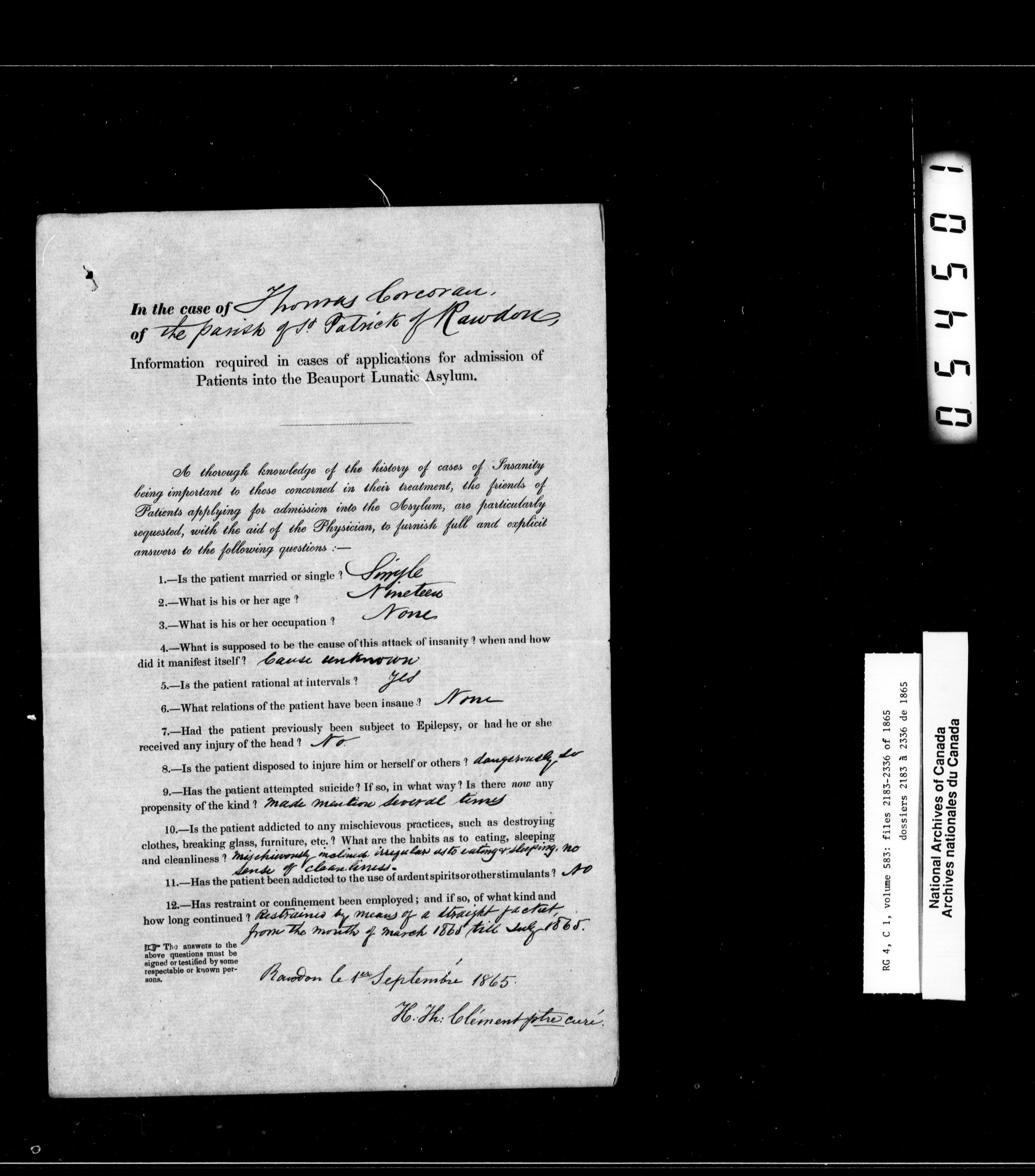 Canada East : Provincial Secretary numbered correspondence files, 1839-1867 - 2800