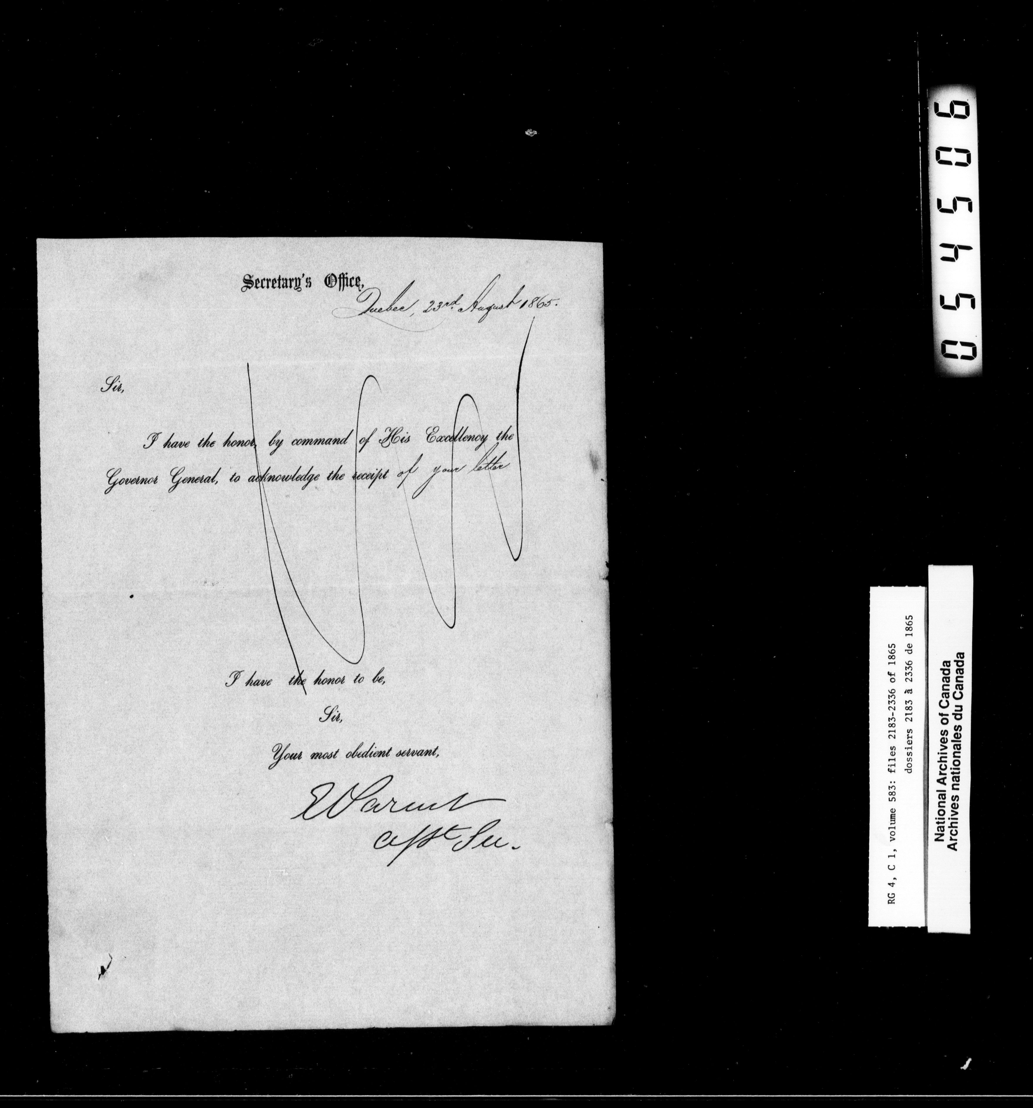 Canada East : Provincial Secretary numbered correspondence files, 1839-1867 - 2800
