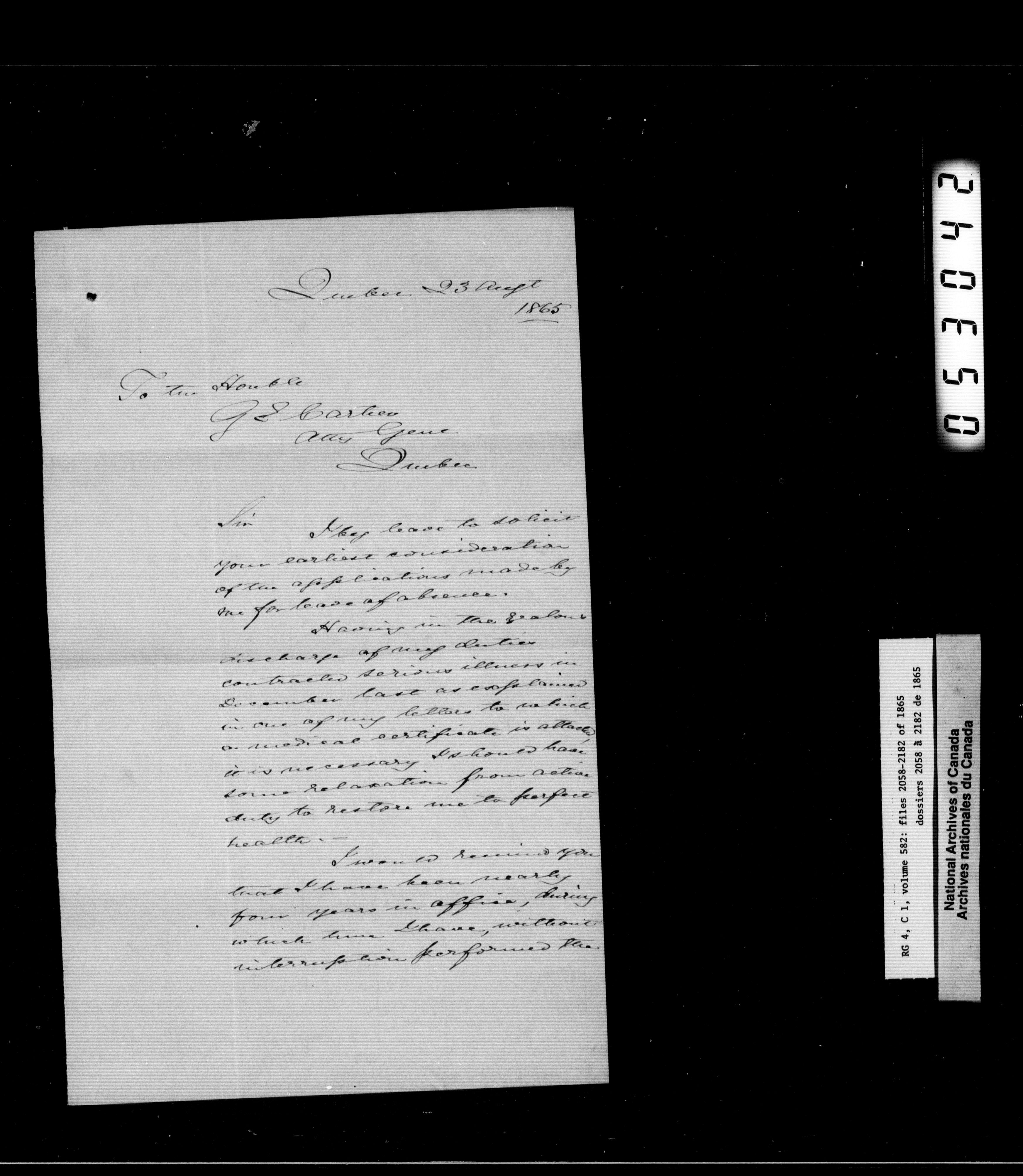 Canada East : Provincial Secretary numbered correspondence files, 1839-1867 - 2800