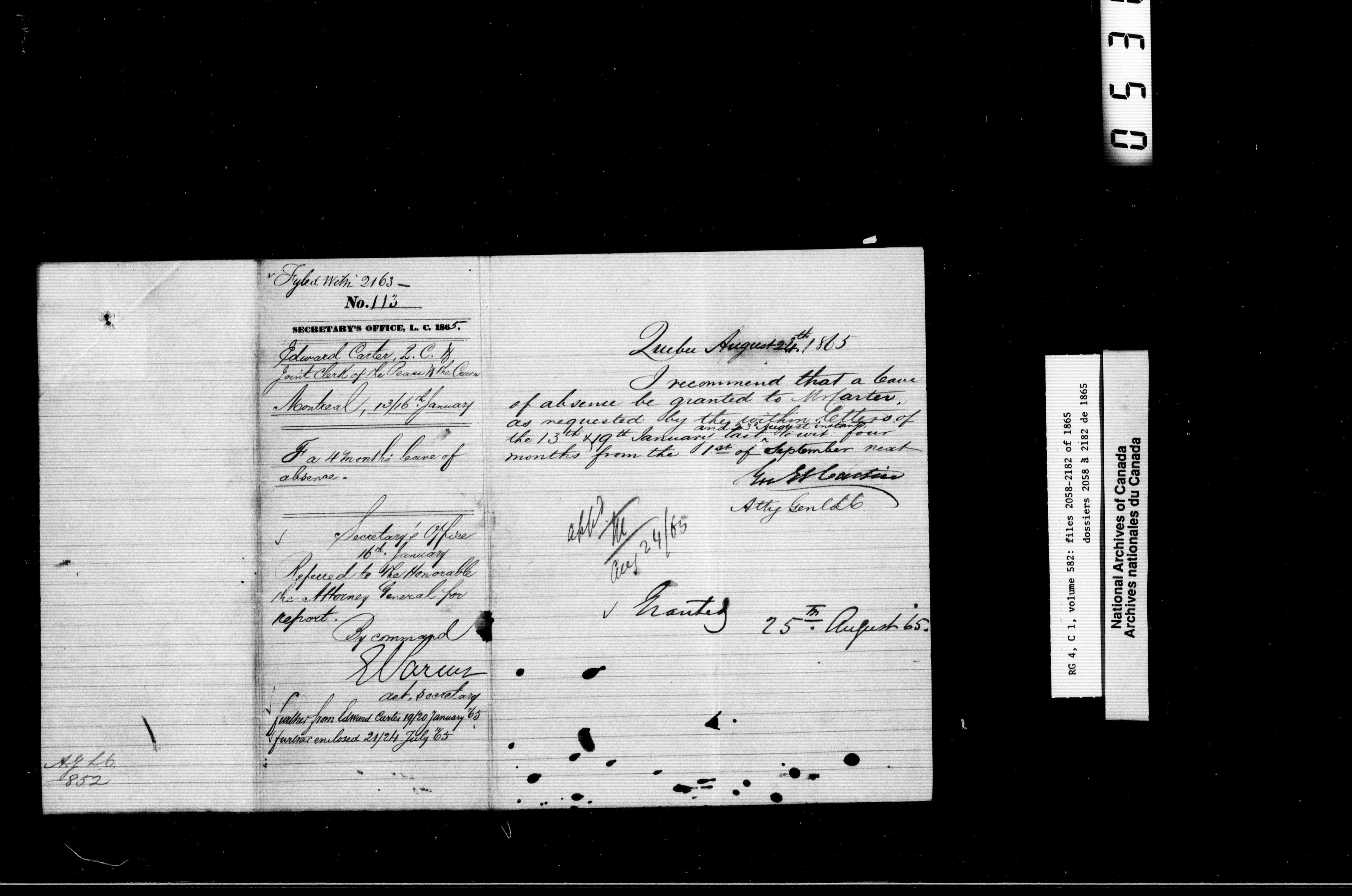 Canada East : Provincial Secretary numbered correspondence files, 1839-1867 - 2800