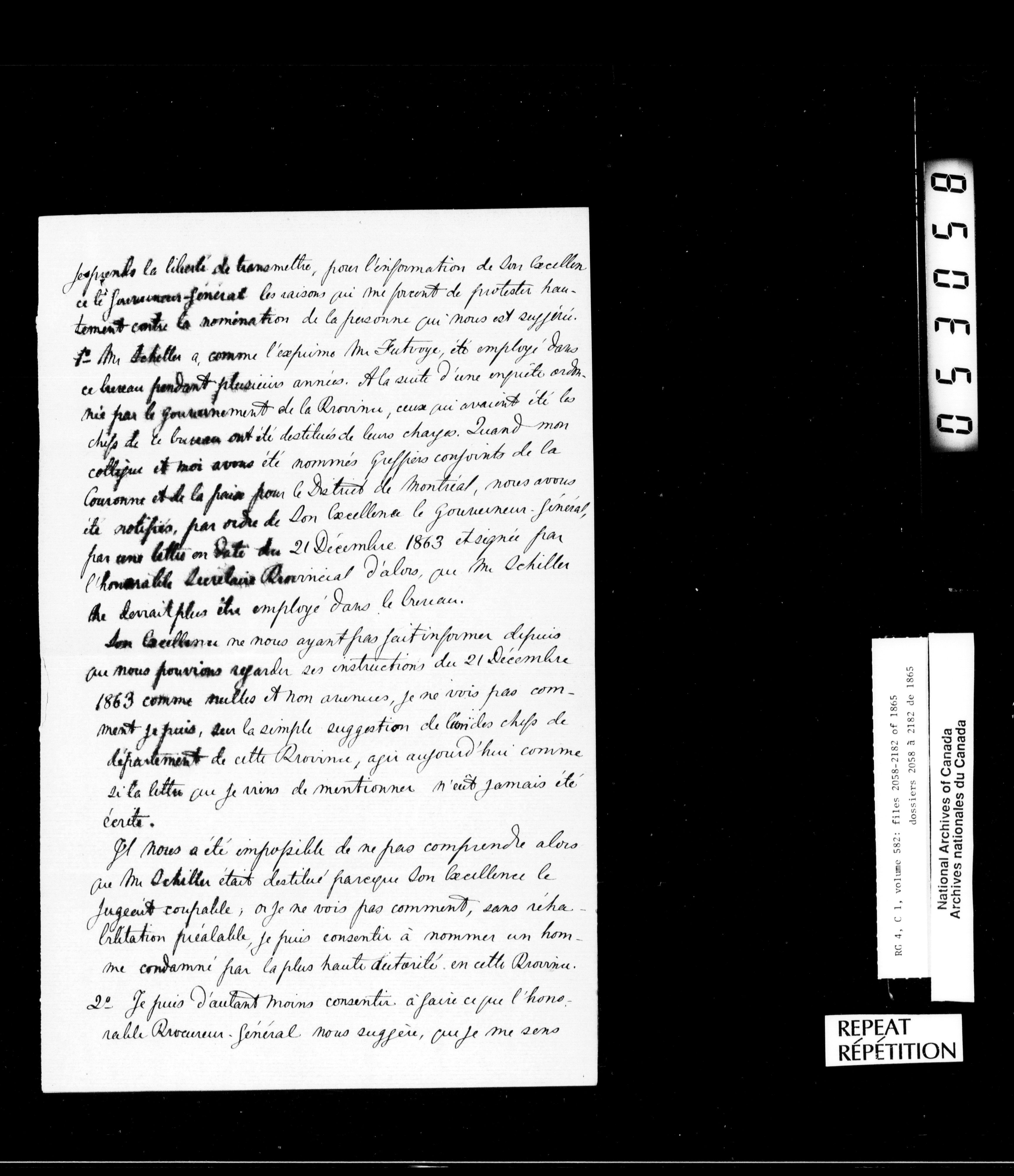 Canada East : Provincial Secretary numbered correspondence files, 1839-1867 - 2800