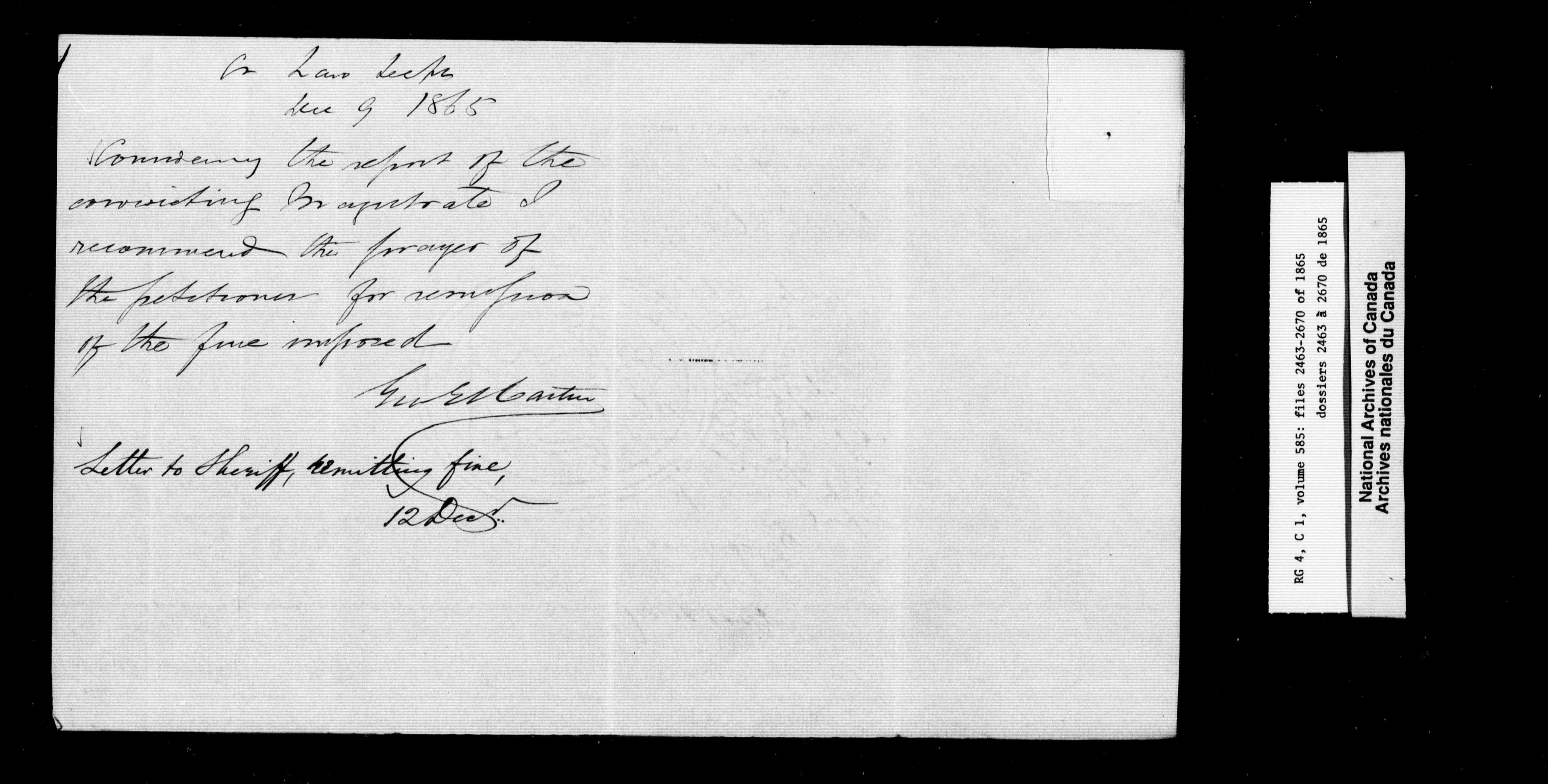 Canada East : Provincial Secretary numbered correspondence files, 1839-1867 - 2802
