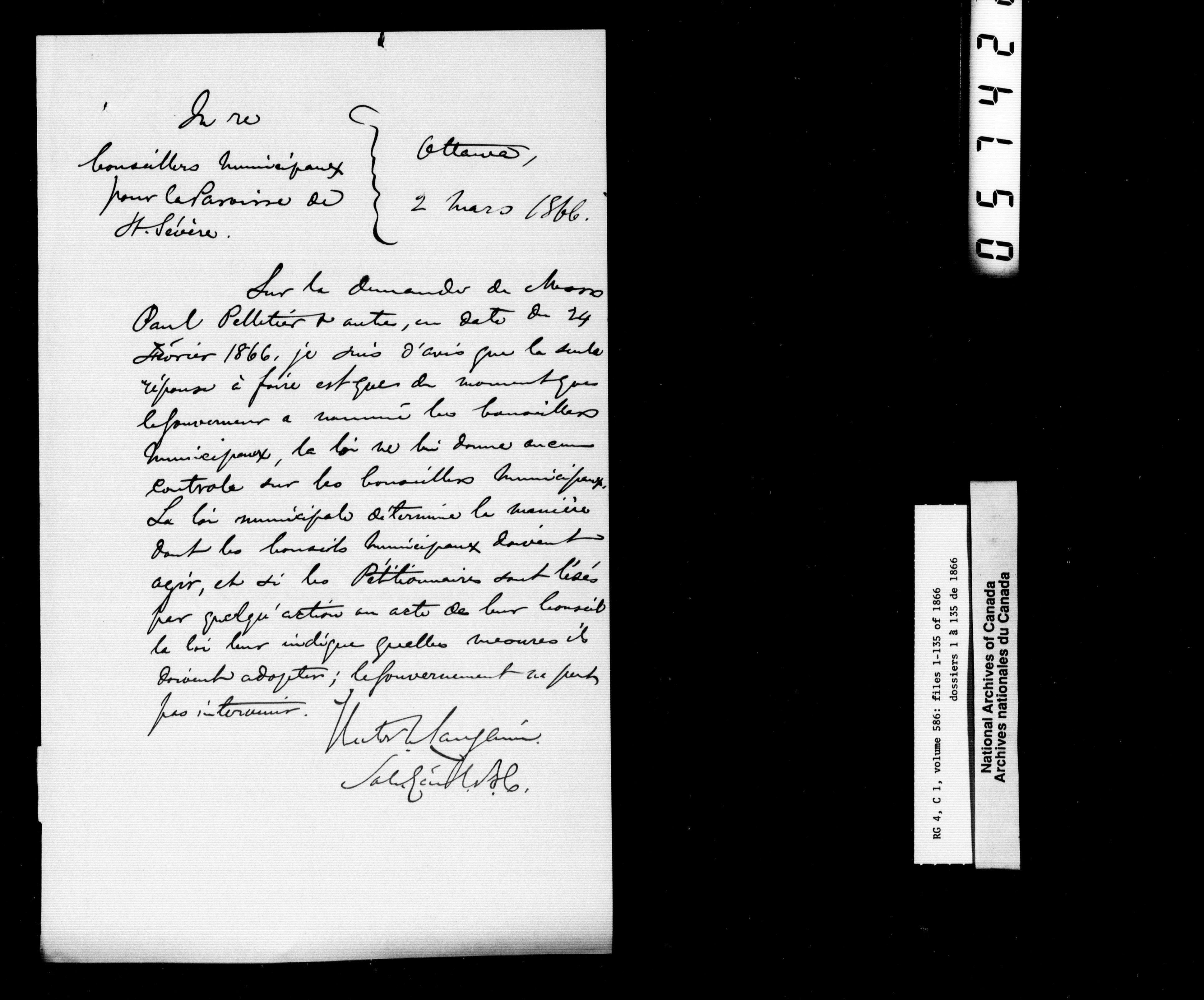 Canada East : Provincial Secretary numbered correspondence files, 1839-1867 - 2803