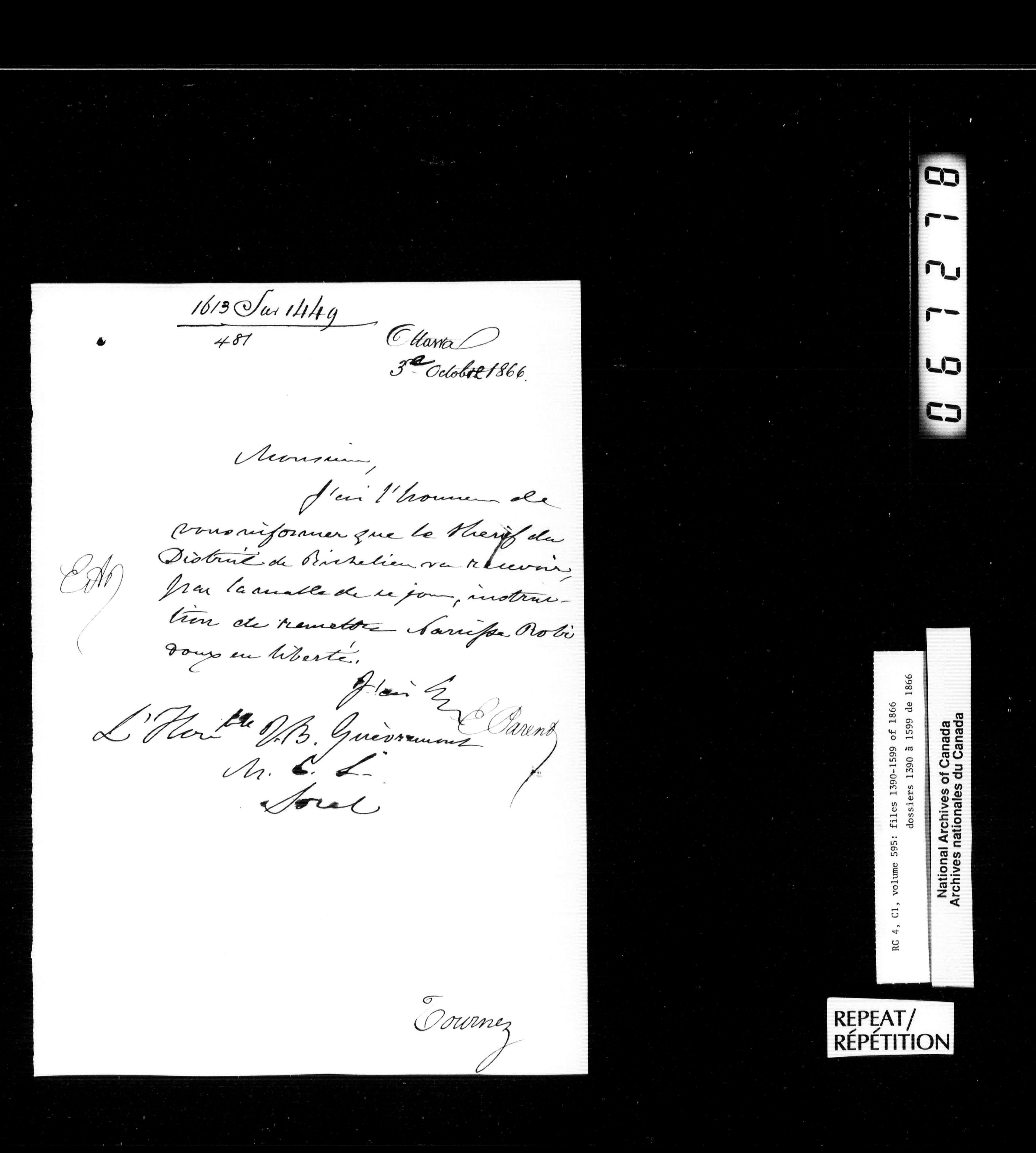 Canada East : Provincial Secretary numbered correspondence files, 1839-1867 - 2809