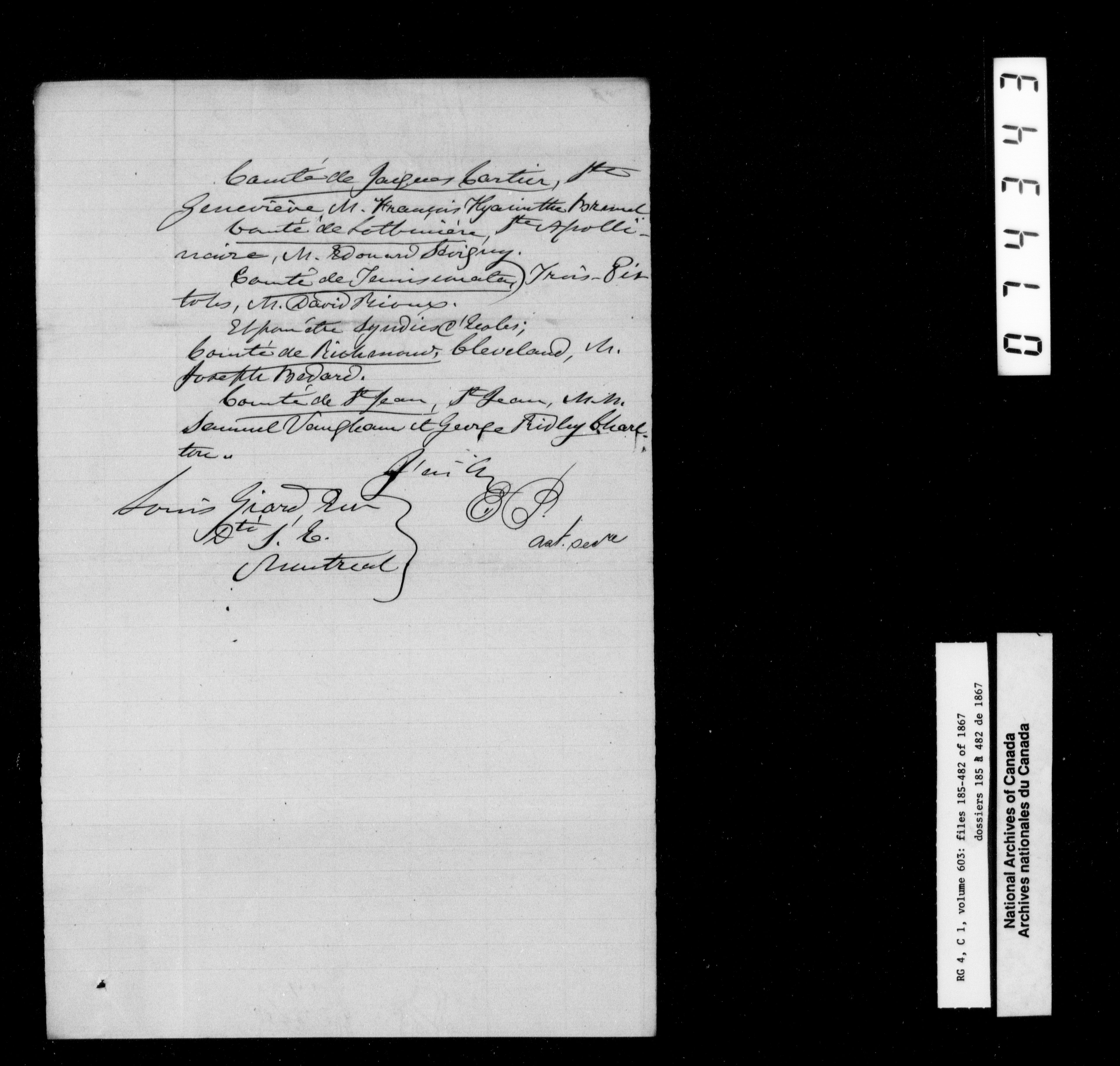 Canada East : Provincial Secretary numbered correspondence files, 1839-1867 - 2815