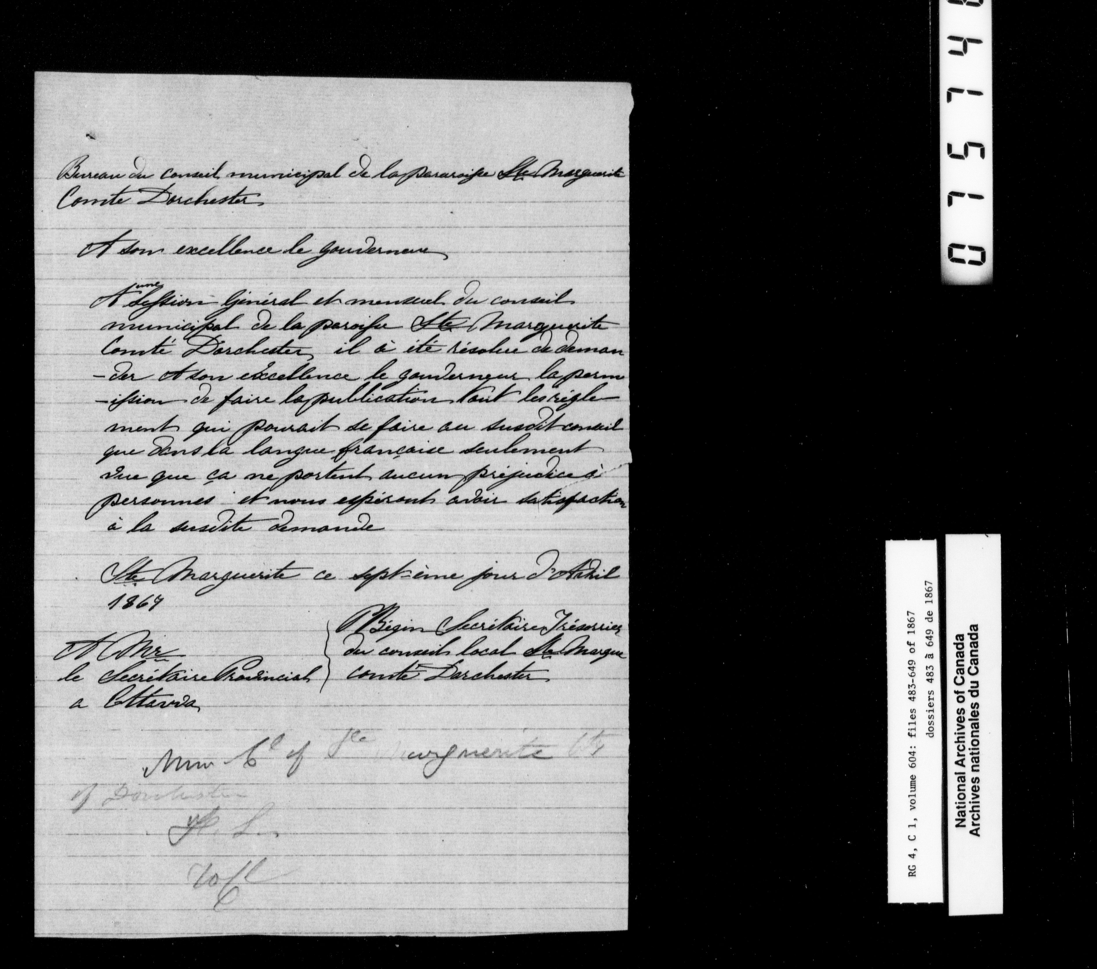 Canada East : Provincial Secretary numbered correspondence files, 1839-1867 - 2815