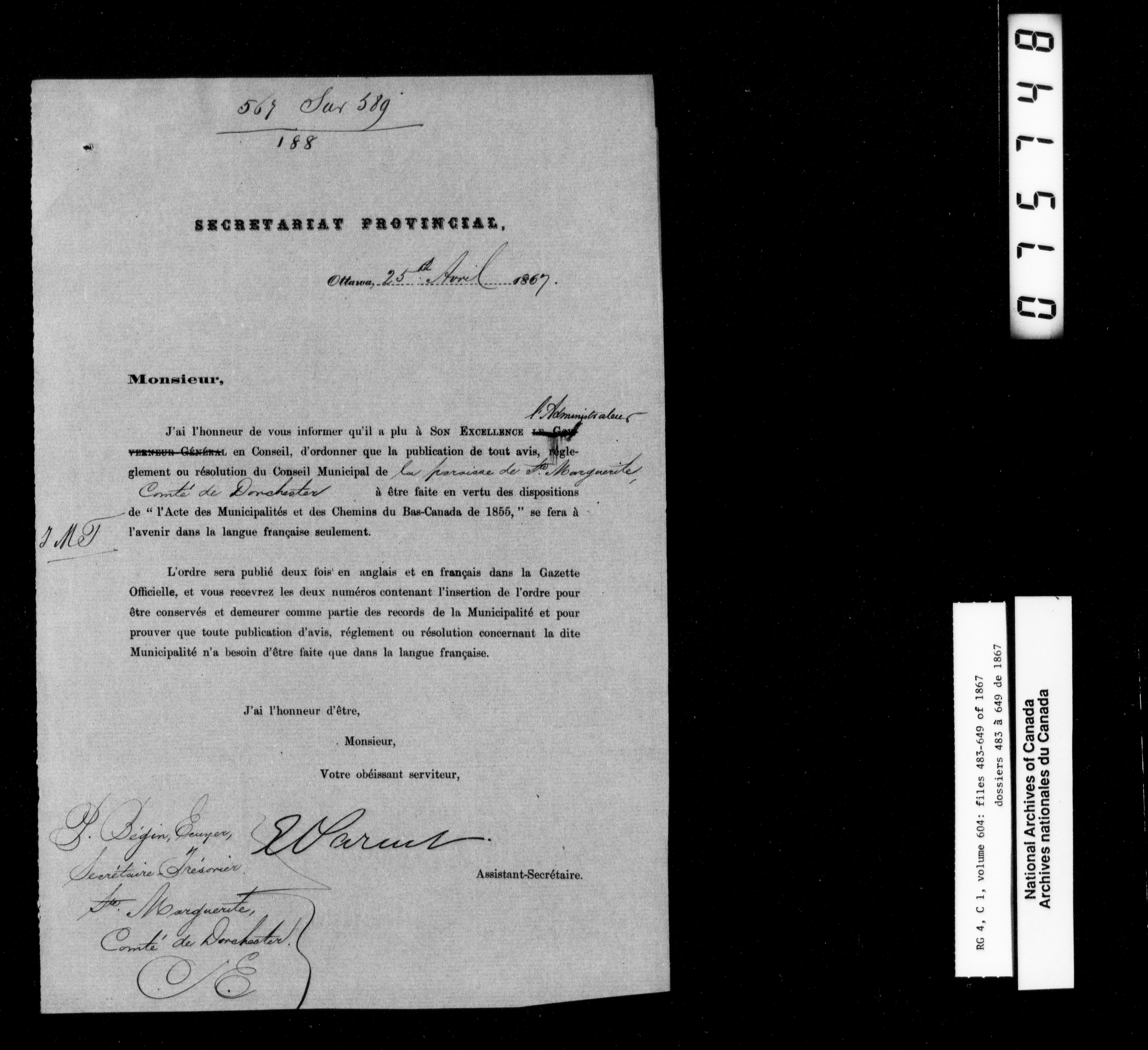 Canada East : Provincial Secretary numbered correspondence files, 1839-1867 - 2815