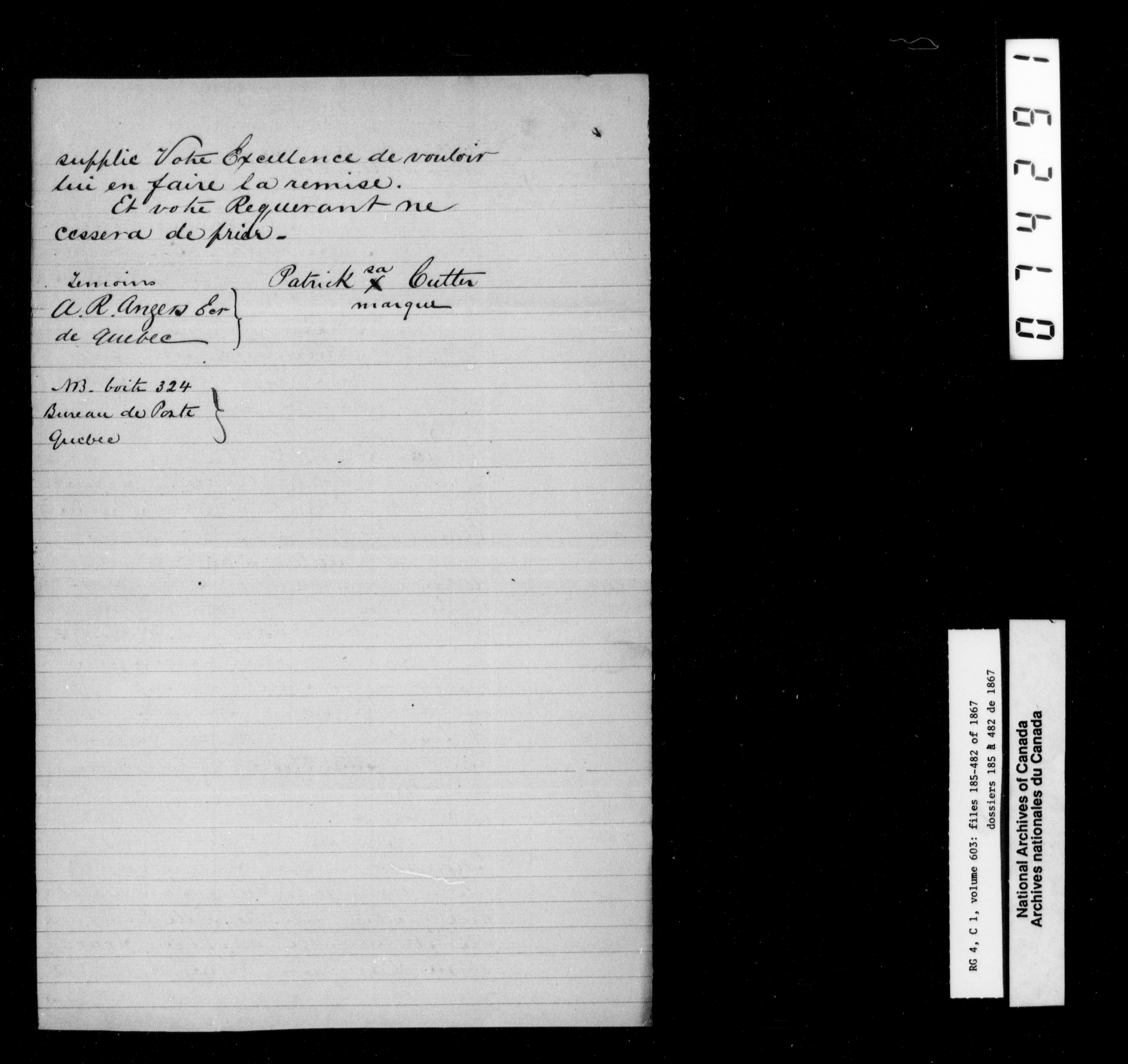 Canada East : Provincial Secretary numbered correspondence files, 1839-1867 - 2815