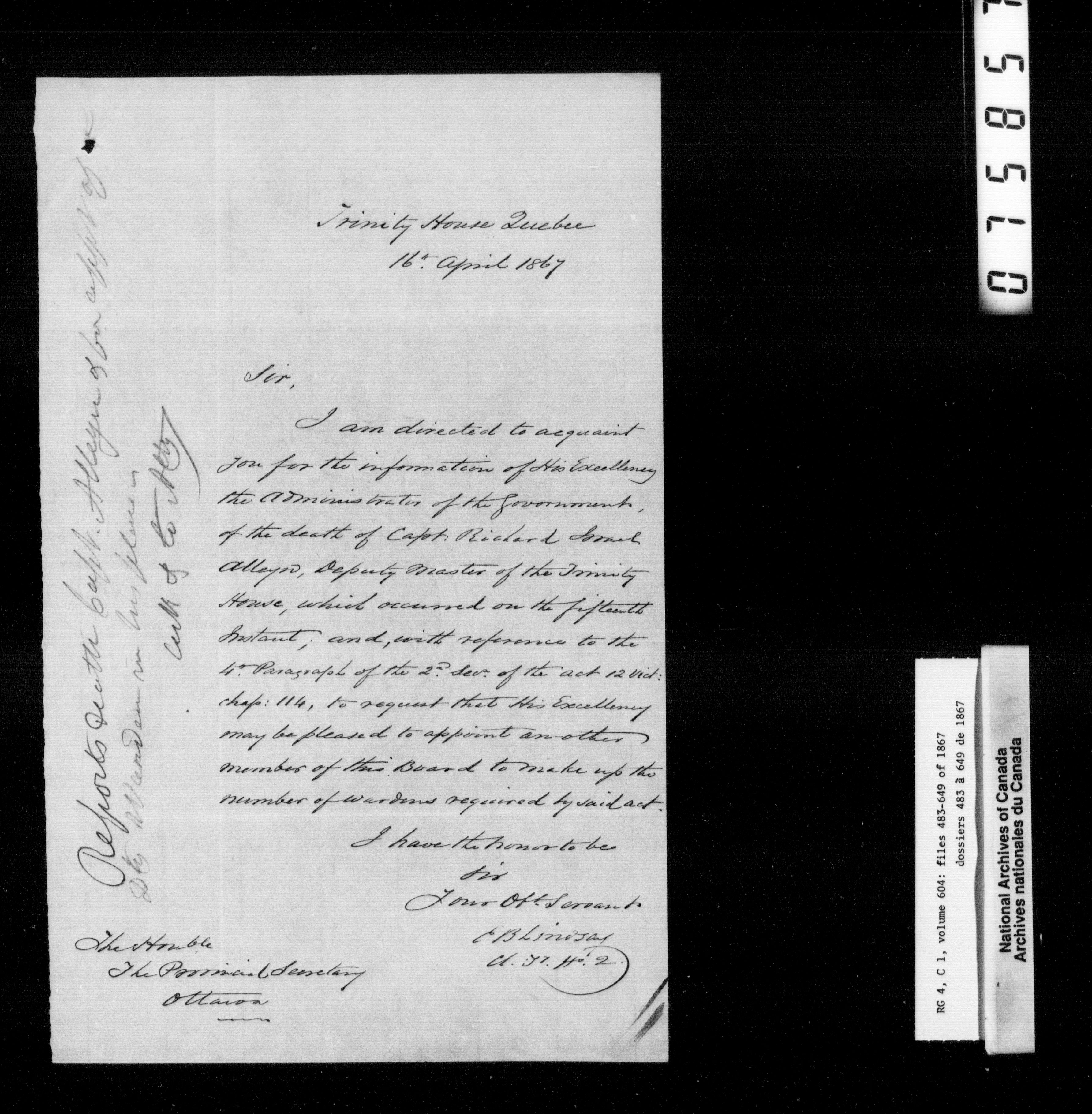 Canada East : Provincial Secretary numbered correspondence files, 1839-1867 - 2816