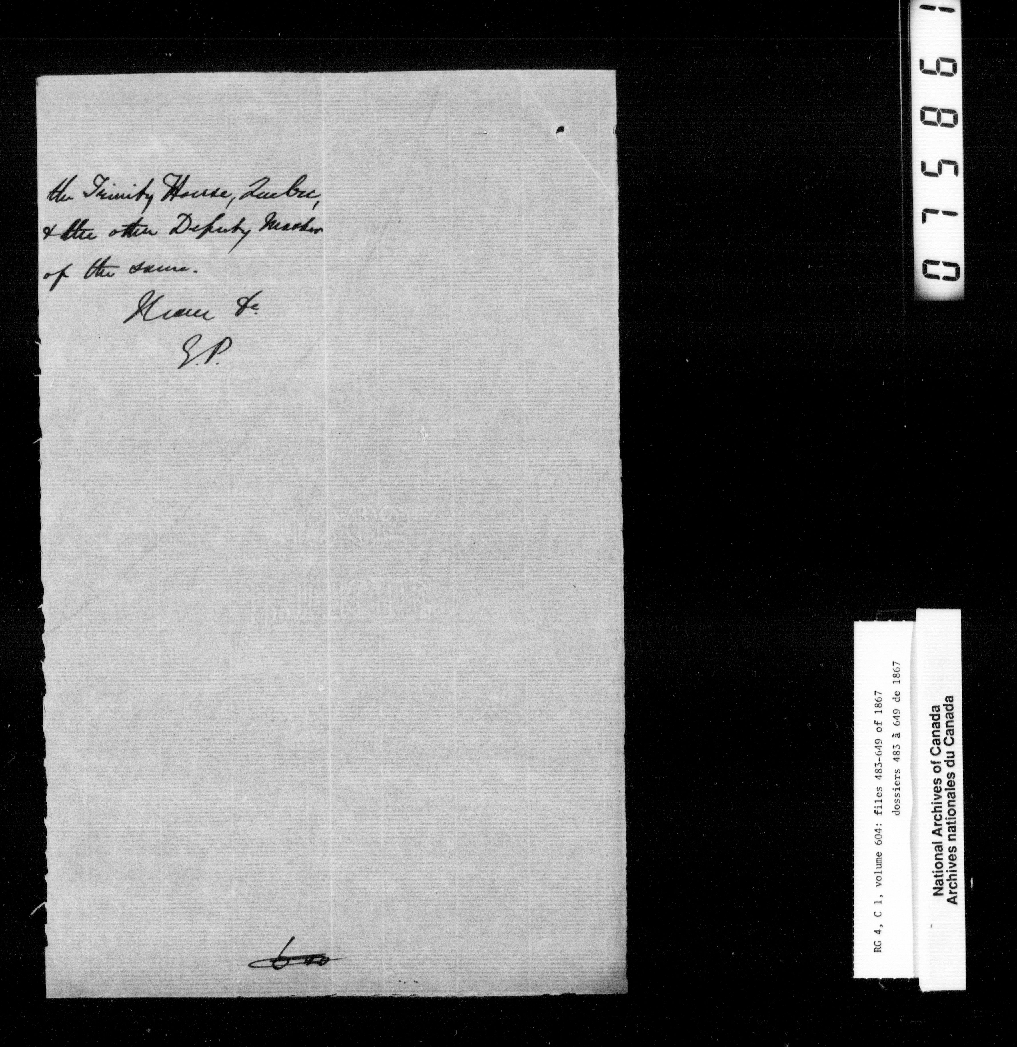 Canada East : Provincial Secretary numbered correspondence files, 1839-1867 - 2816