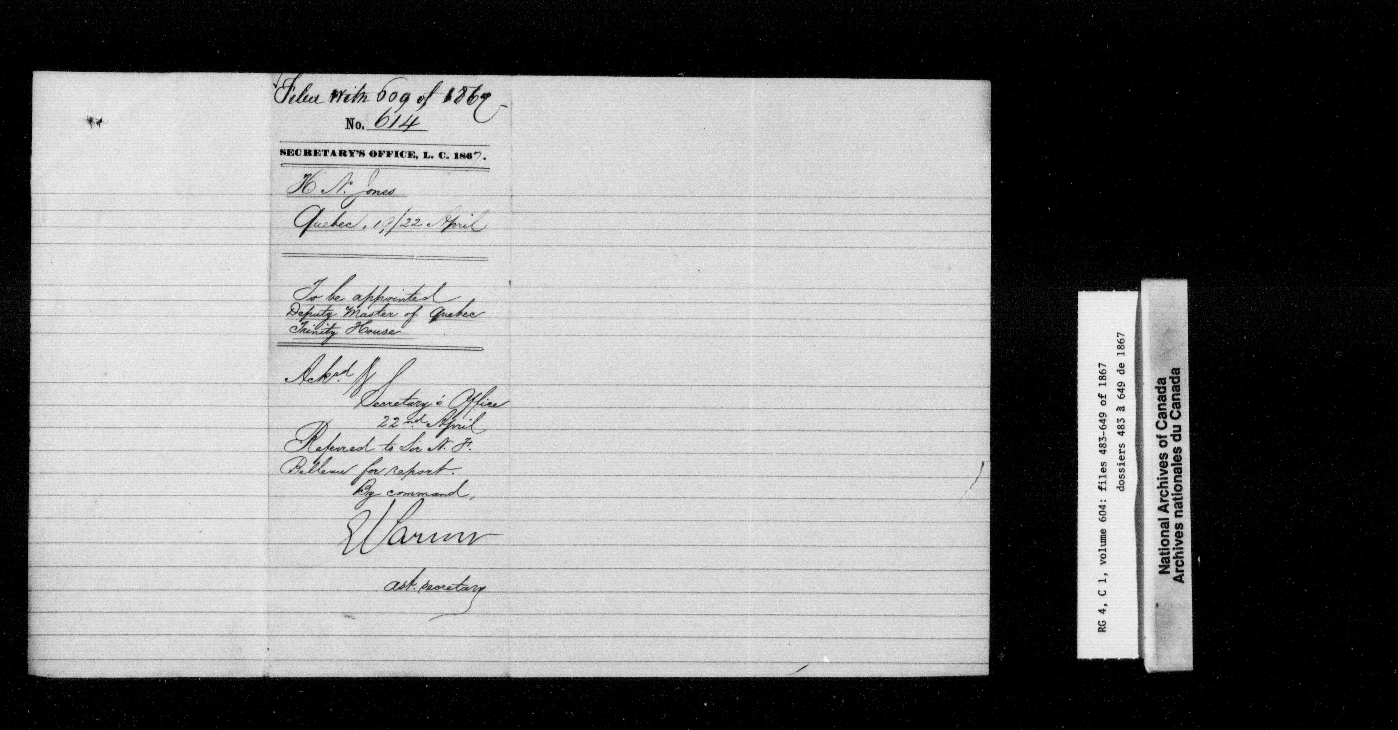 Canada East : Provincial Secretary numbered correspondence files, 1839-1867 : H-2816