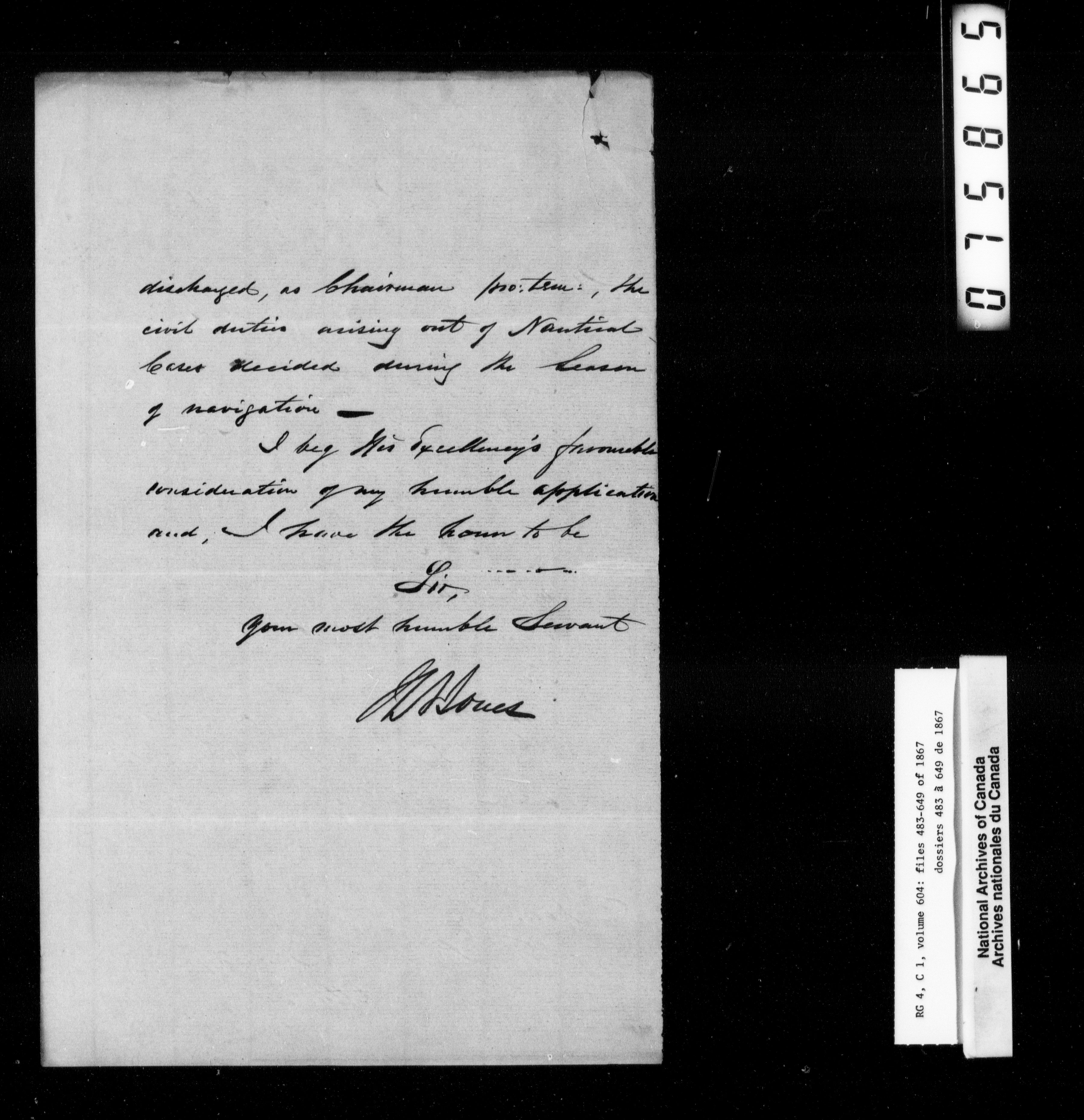 Canada East : Provincial Secretary numbered correspondence files, 1839-1867 - 2816