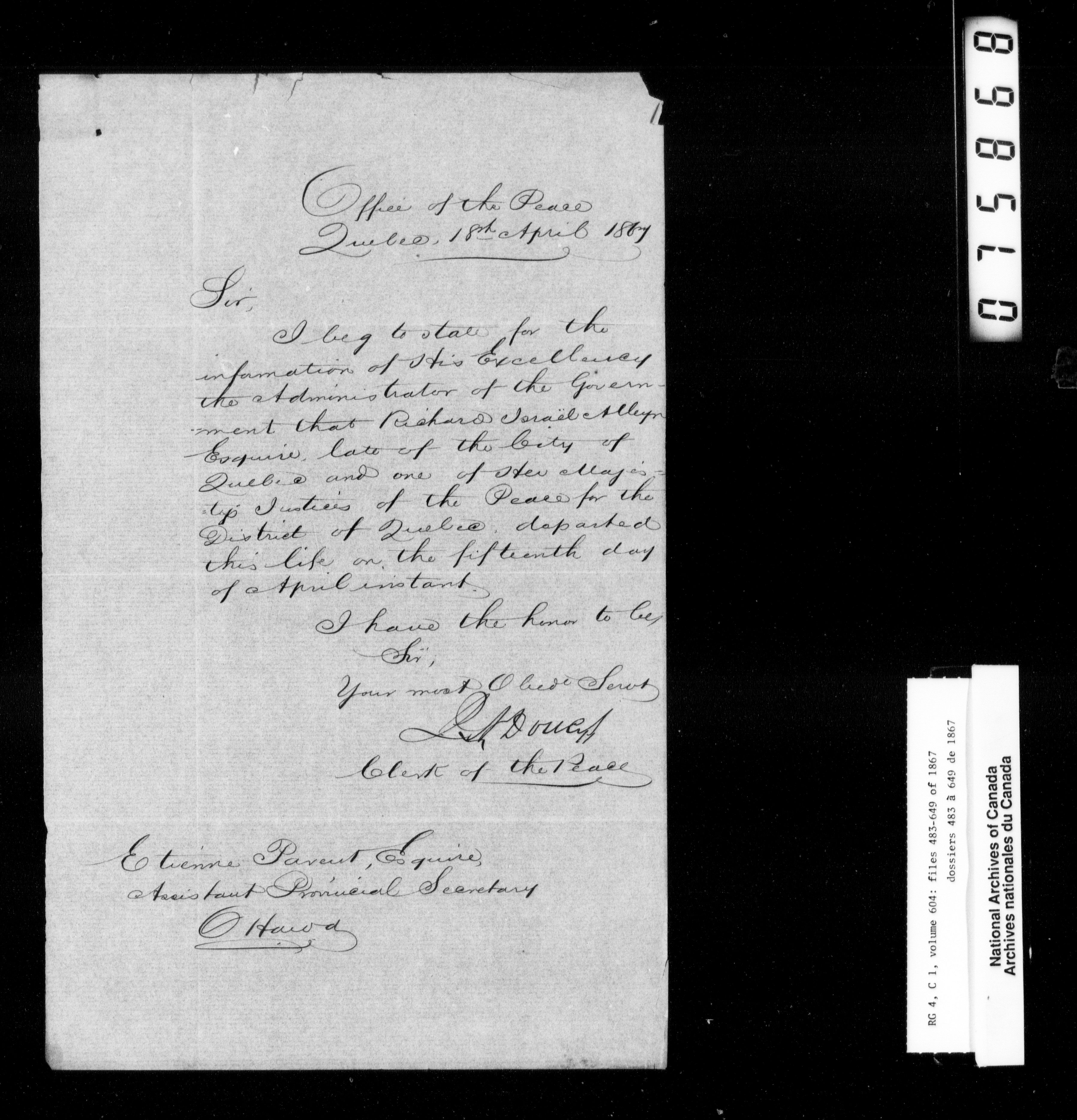 Canada East : Provincial Secretary numbered correspondence files, 1839-1867 - 2816