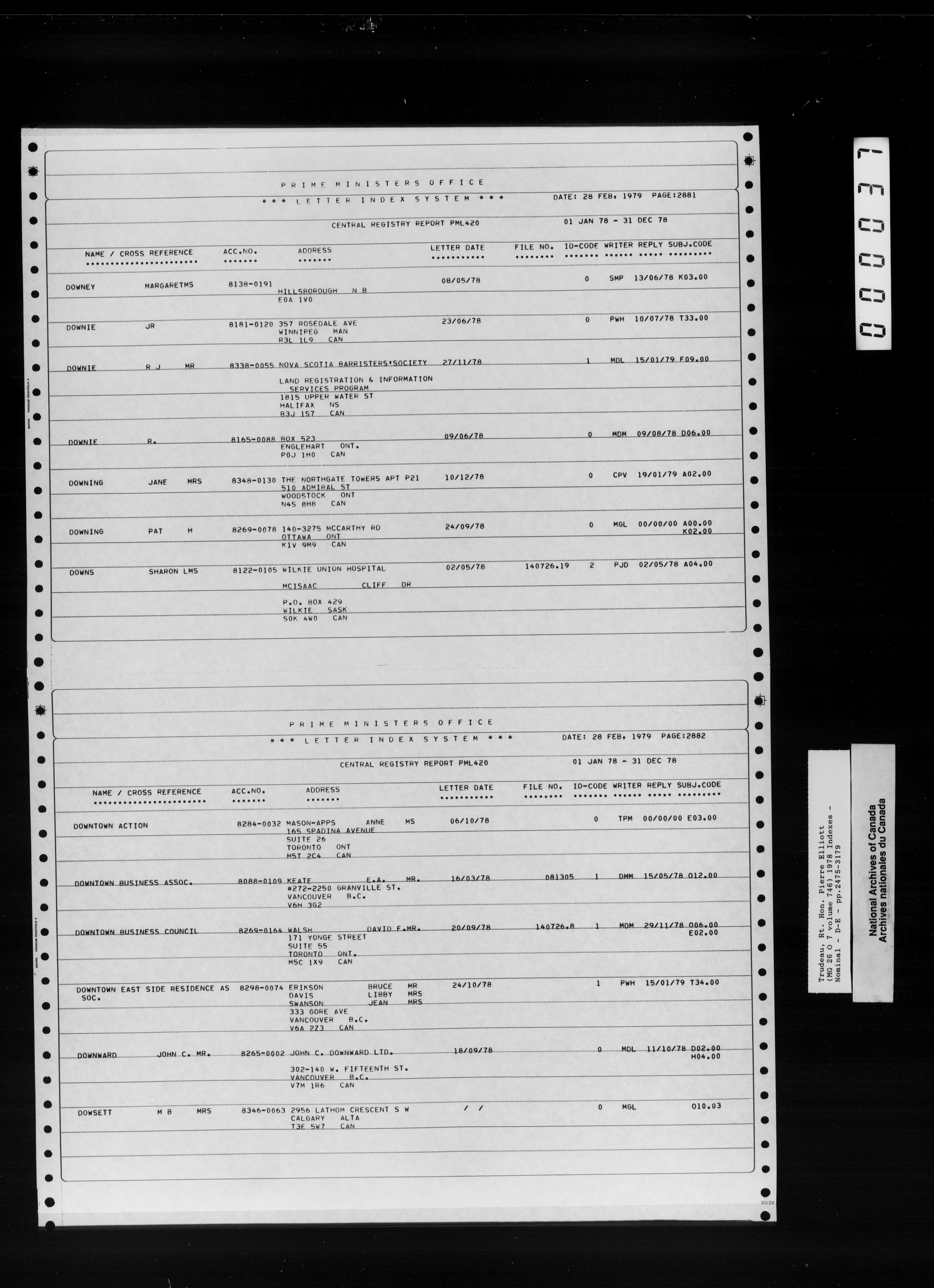 Pierre Elliott Trudeau, PMO general correspondence, 1969-1978 : Indexes : H-2823