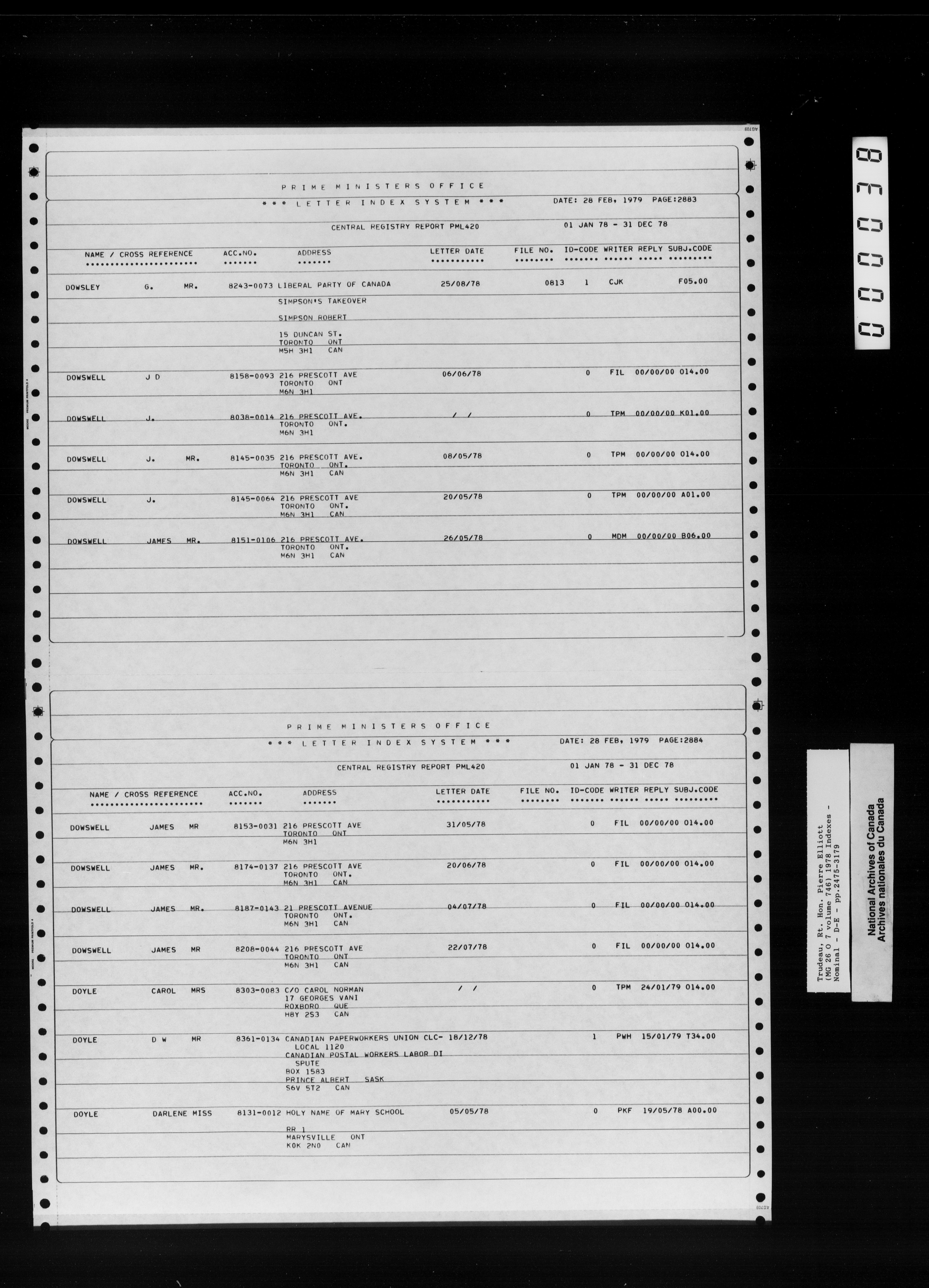 Pierre Elliott Trudeau, PMO general correspondence, 1969-1978 : Indexes : H-2823