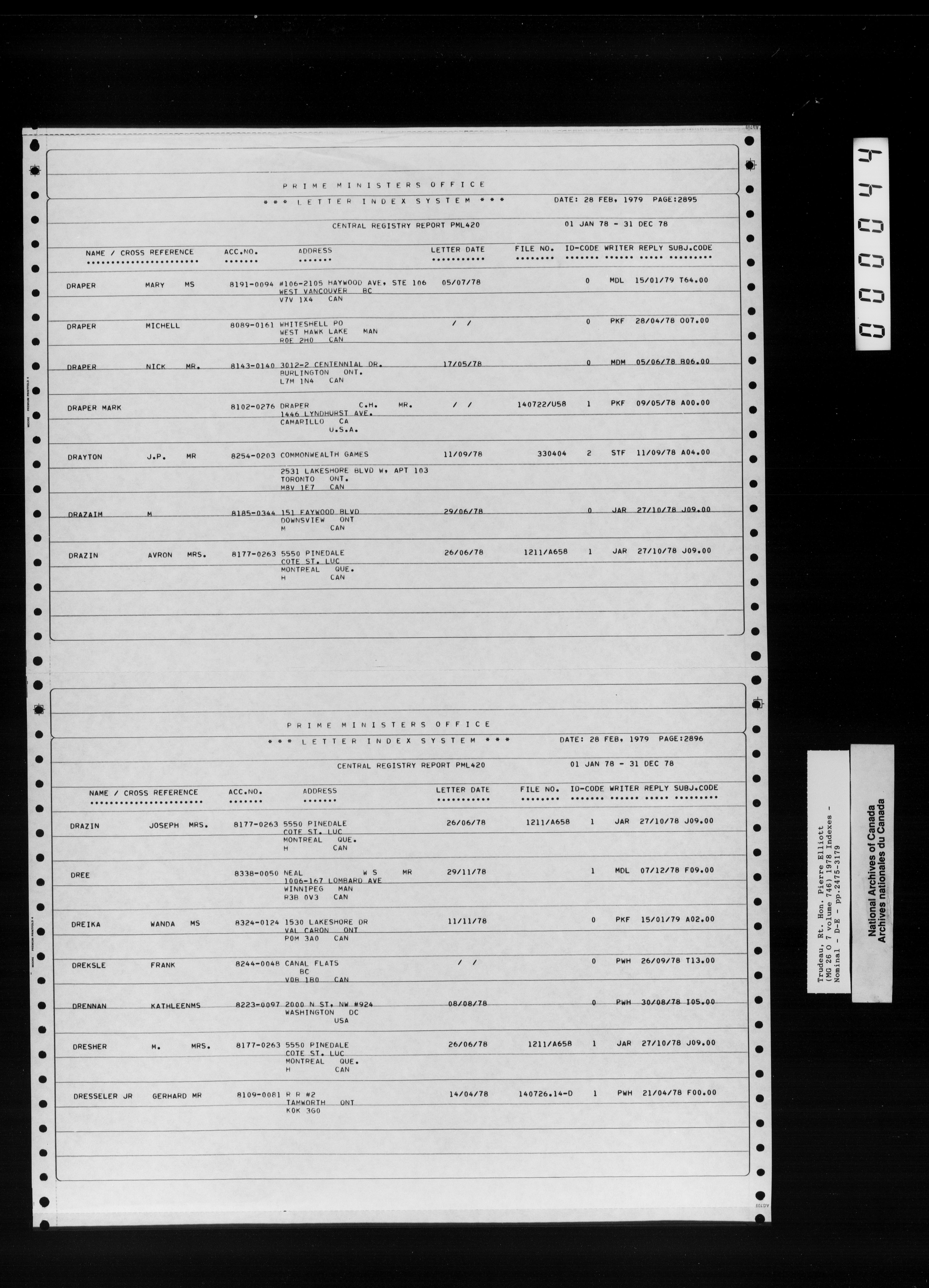 Pierre Elliott Trudeau, PMO general correspondence, 1969-1978 : Indexes : H-2823