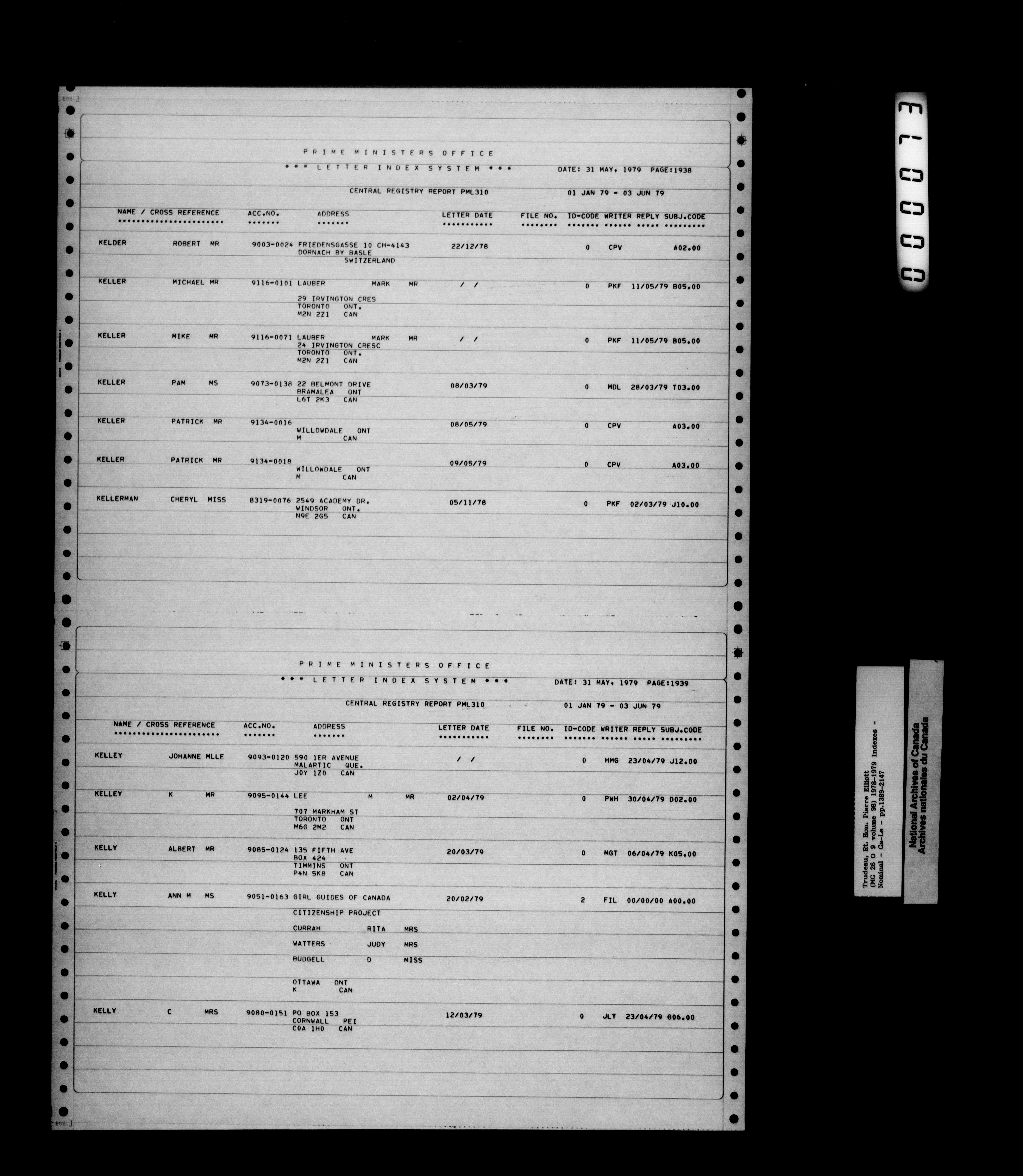 Pierre Trudeau : PMO correspondence, 1978-1979 : Nominal indexes - 2828