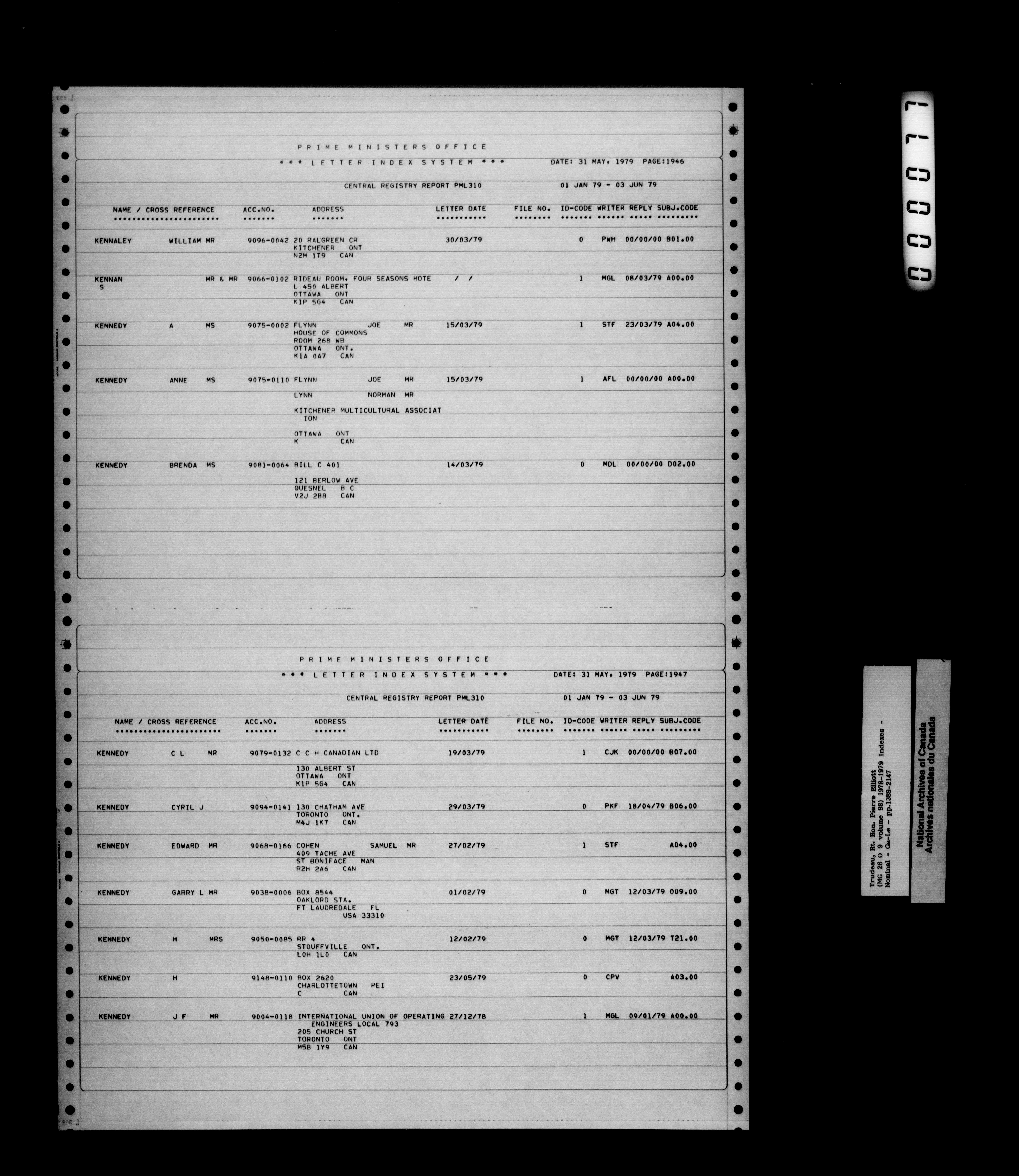 Pierre Trudeau : PMO correspondence, 1978-1979 : Nominal indexes - 2828