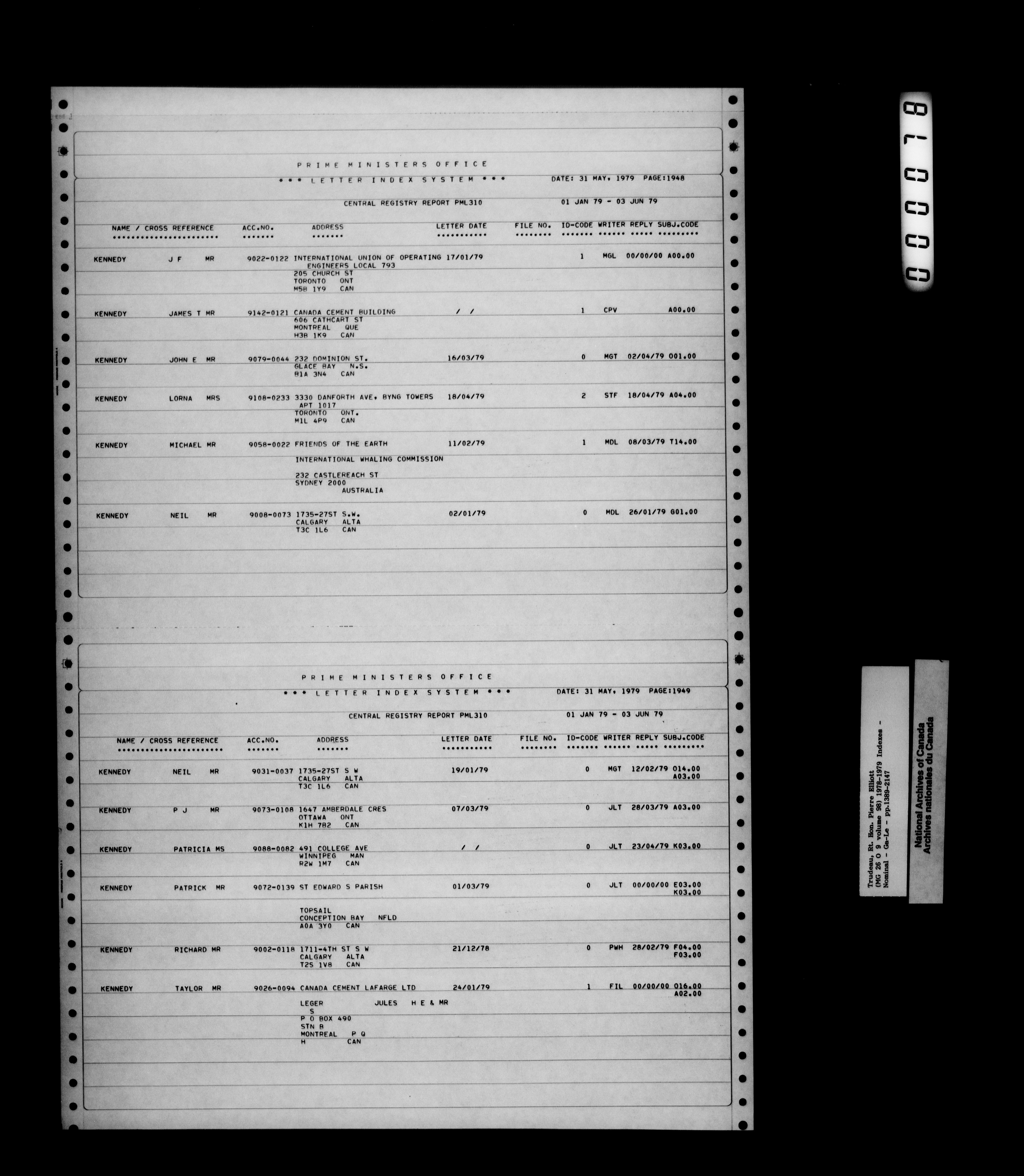 Pierre Trudeau : PMO correspondence, 1978-1979 : Nominal indexes - 2828