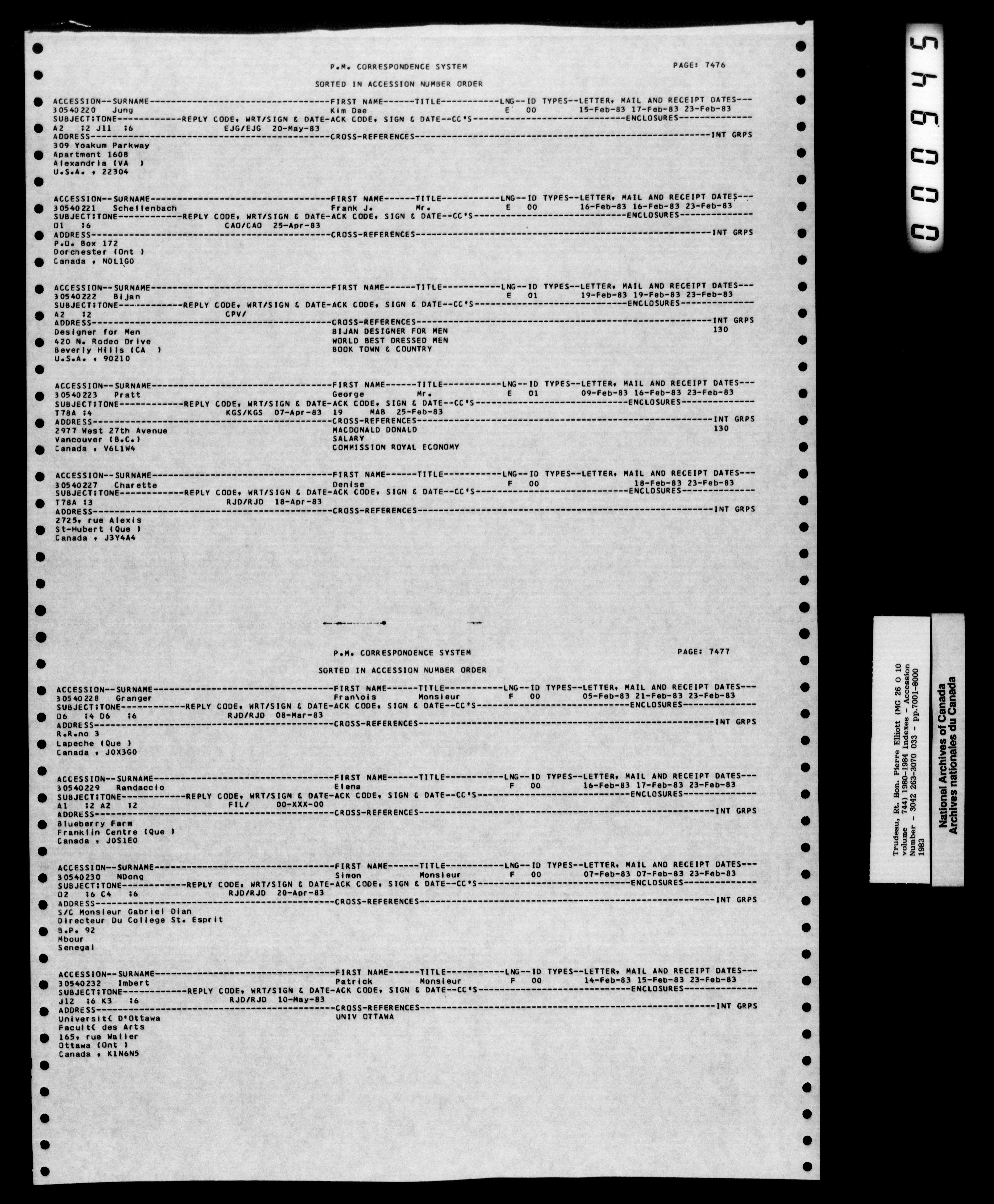 Pierre Trudeau : PMO correspondence, 1980-1984 - 2852