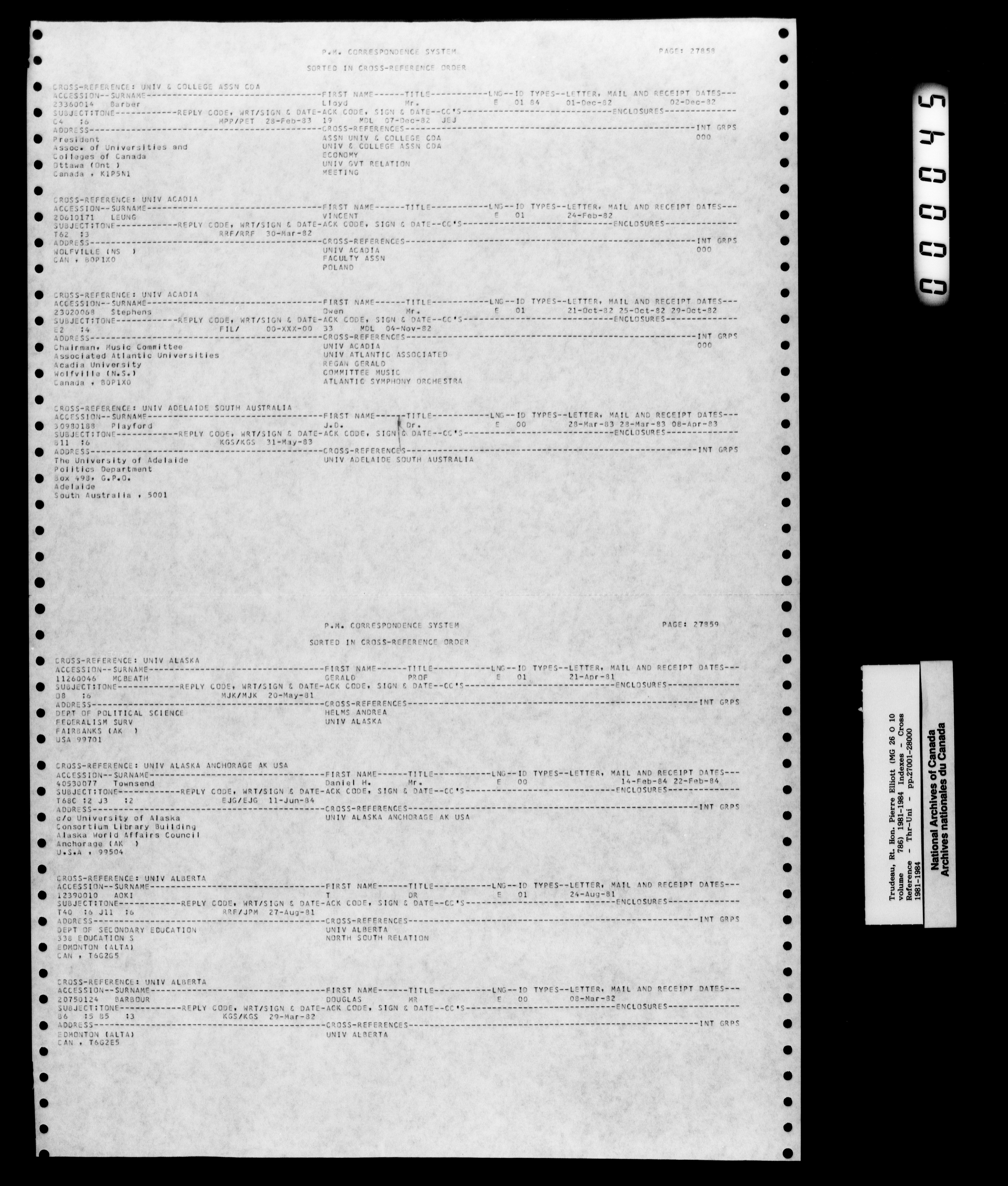 Pierre Trudeau : Correspondance du premier ministre de 1980 à 1984 : Indexes : H-2876