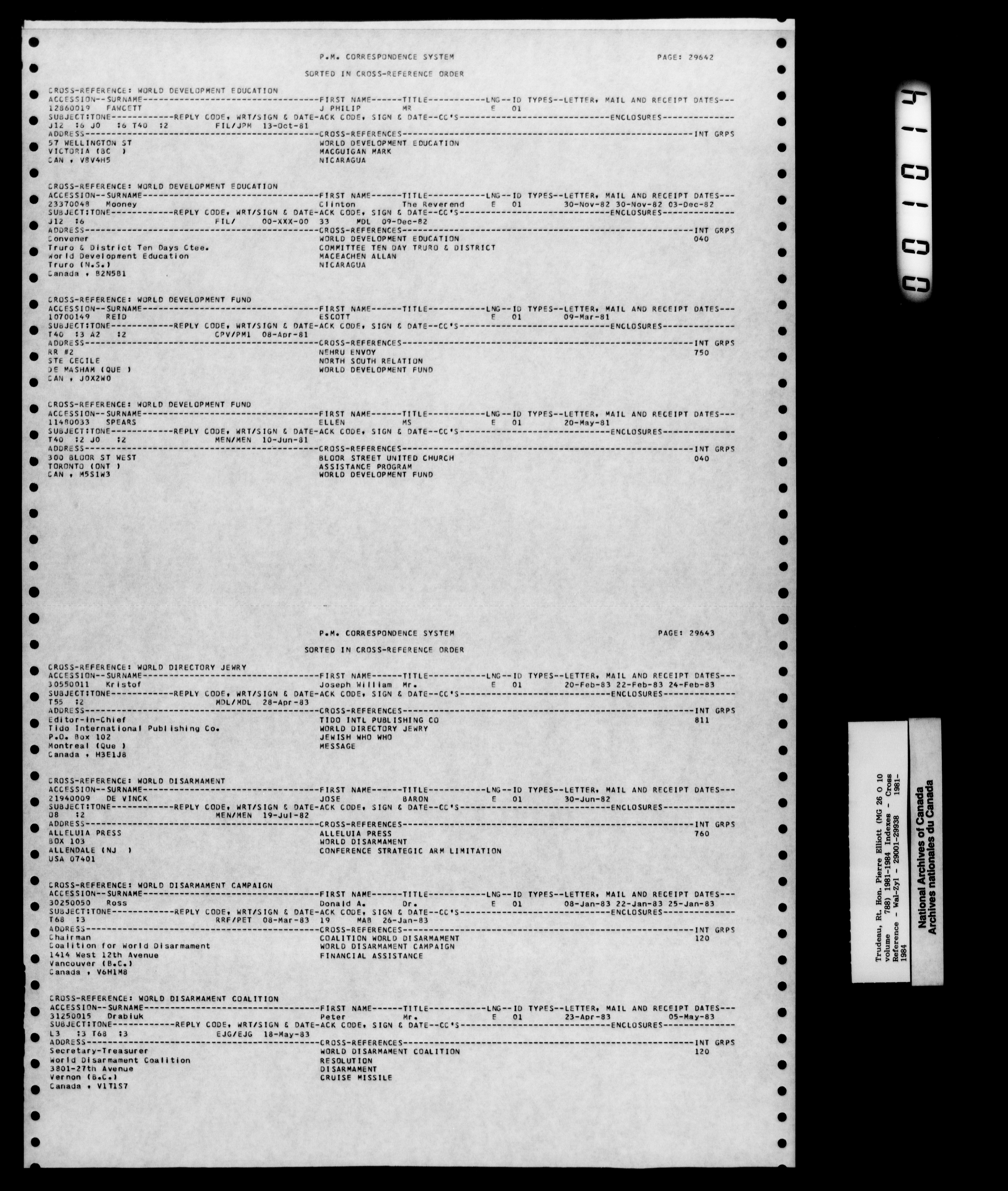 Pierre Trudeau : Correspondance du premier ministre de 1980 à 1984 : Indexes : H-2876