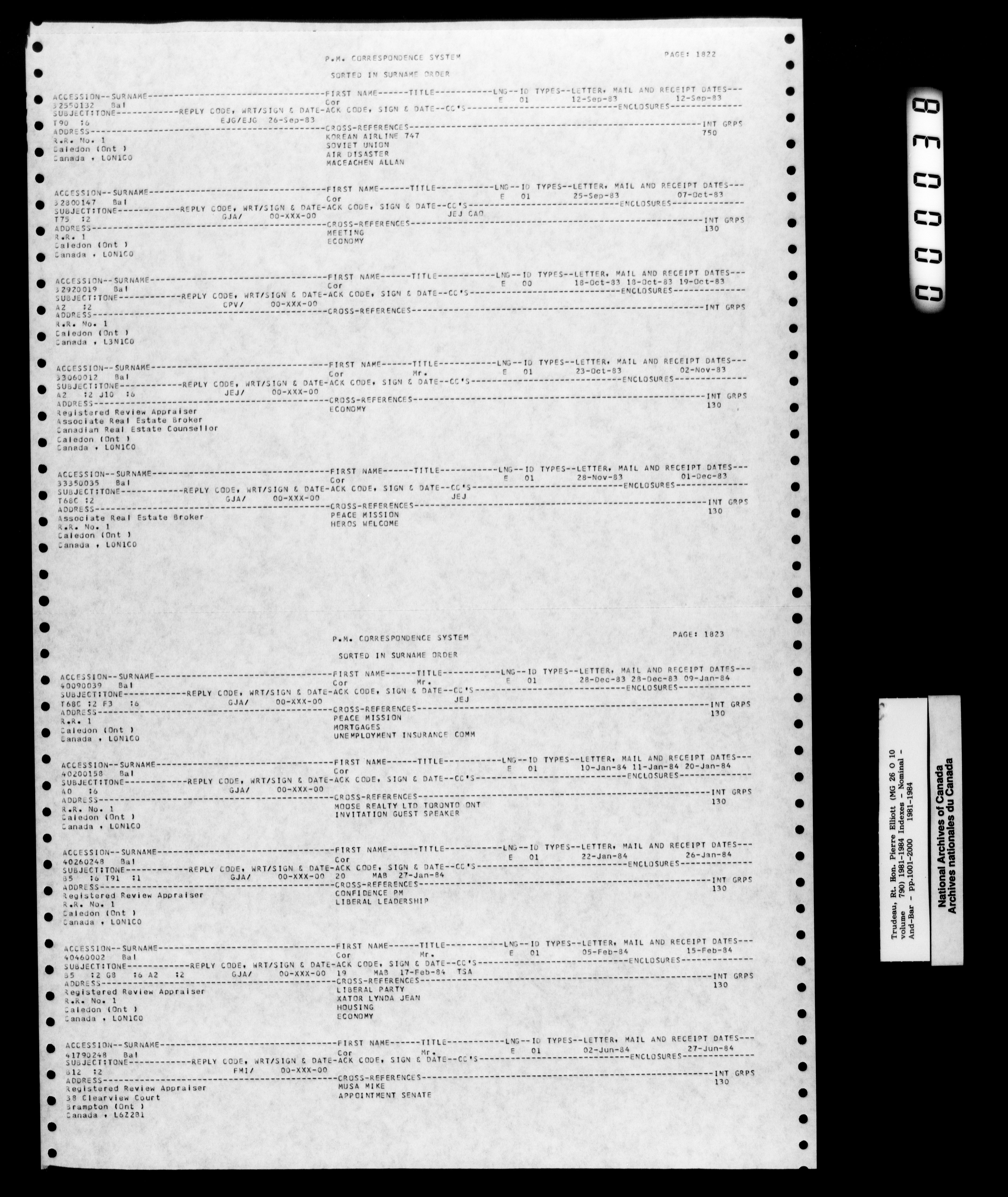 Pierre Trudeau : Correspondance du premier ministre de 1980 à 1984 : Indexes : H-2878