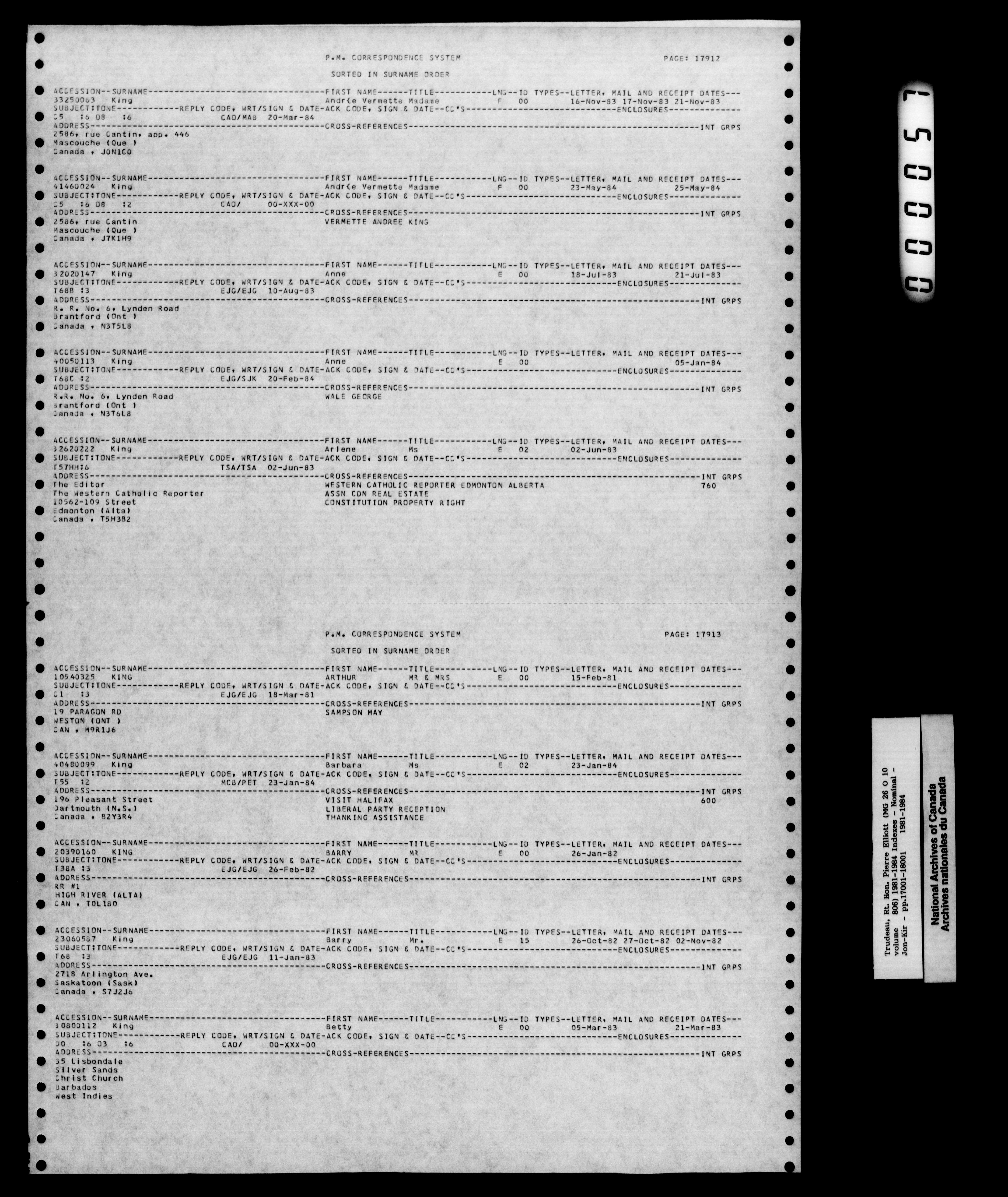 Pierre Trudeau : Correspondance du premier ministre de 1980 à 1984 : Indexes : H-2886