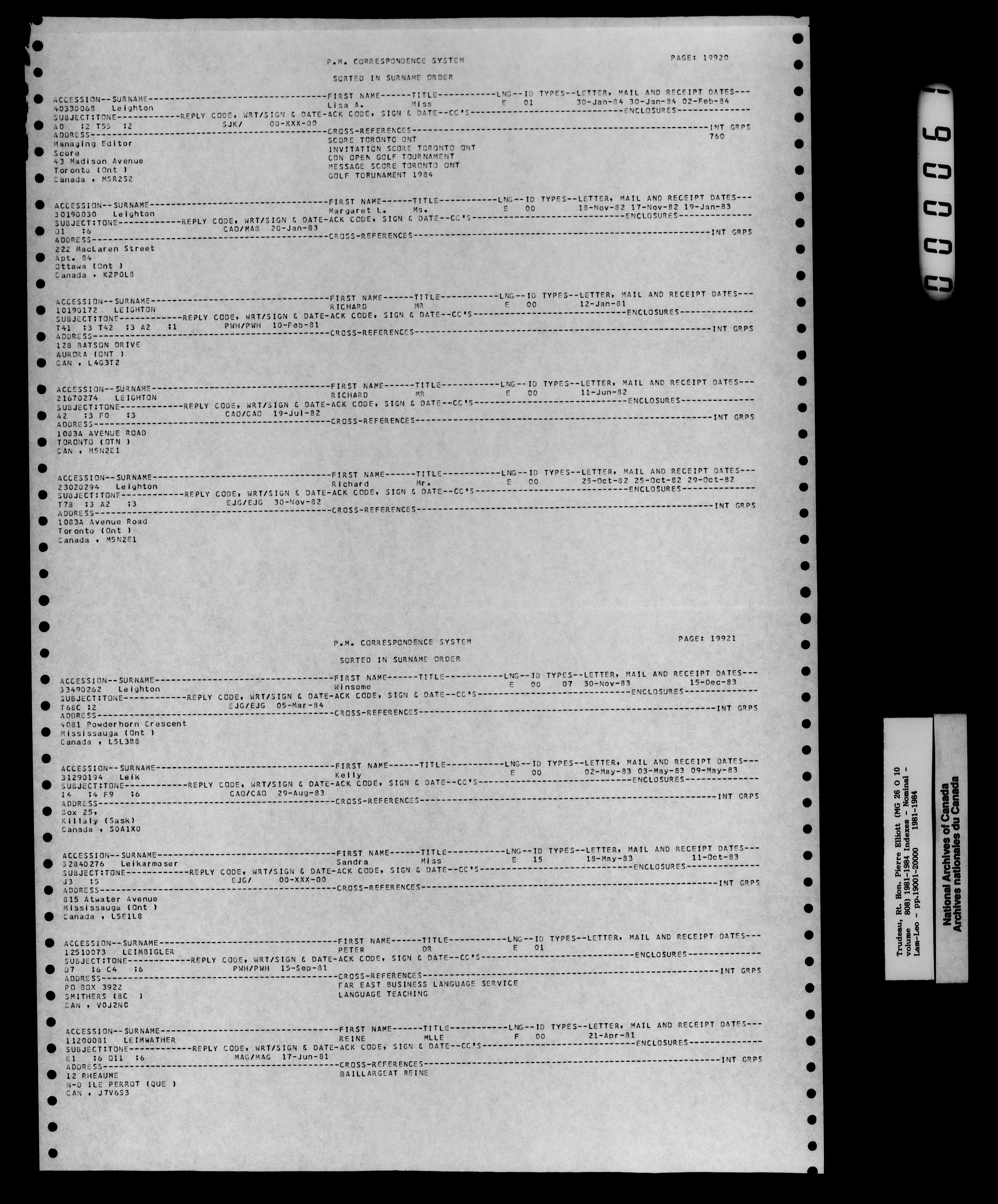Pierre Trudeau : Correspondance du premier ministre de 1980 à 1984 : Indexes : H-2887