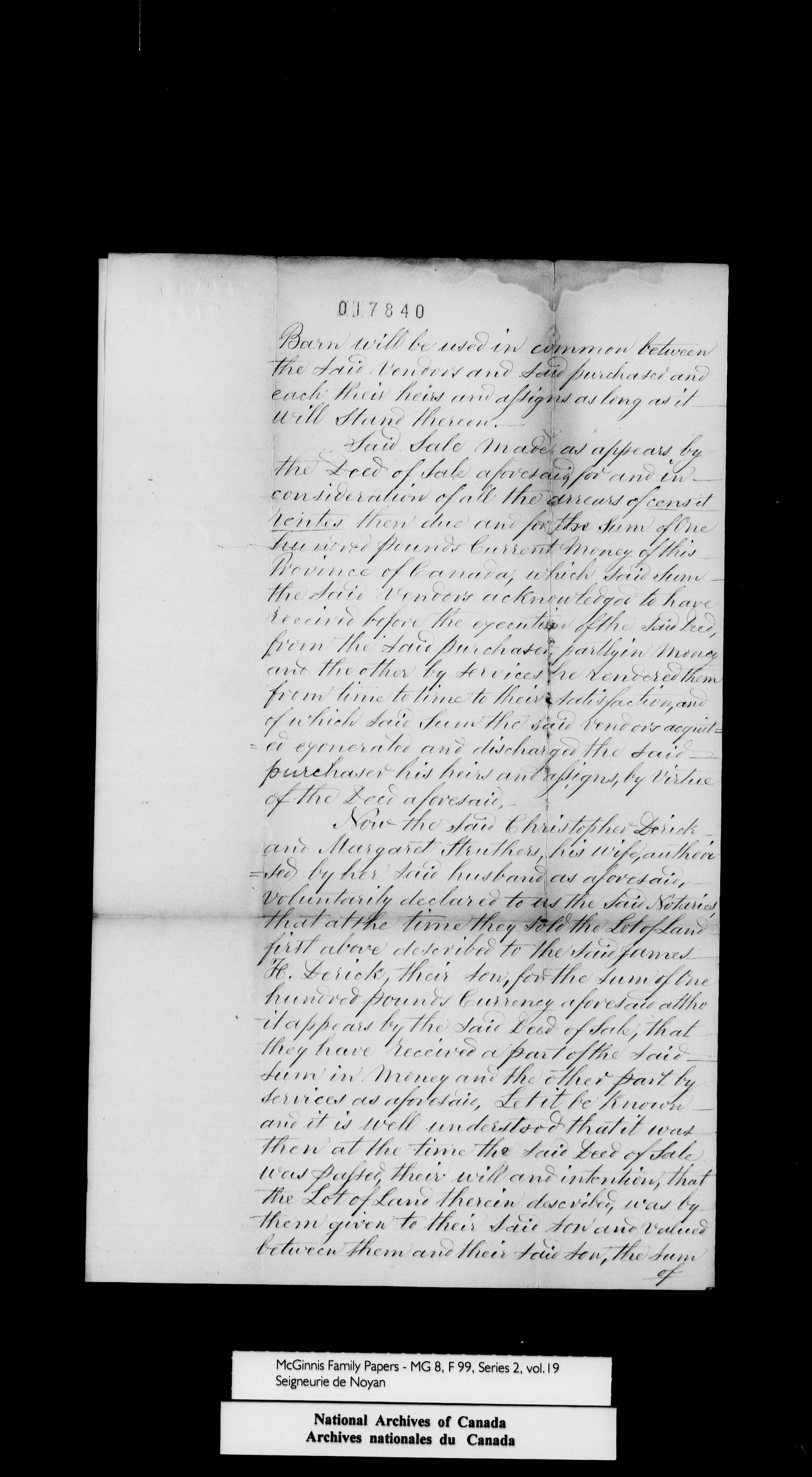 McGinnis Family Seigniorial papers : Series II