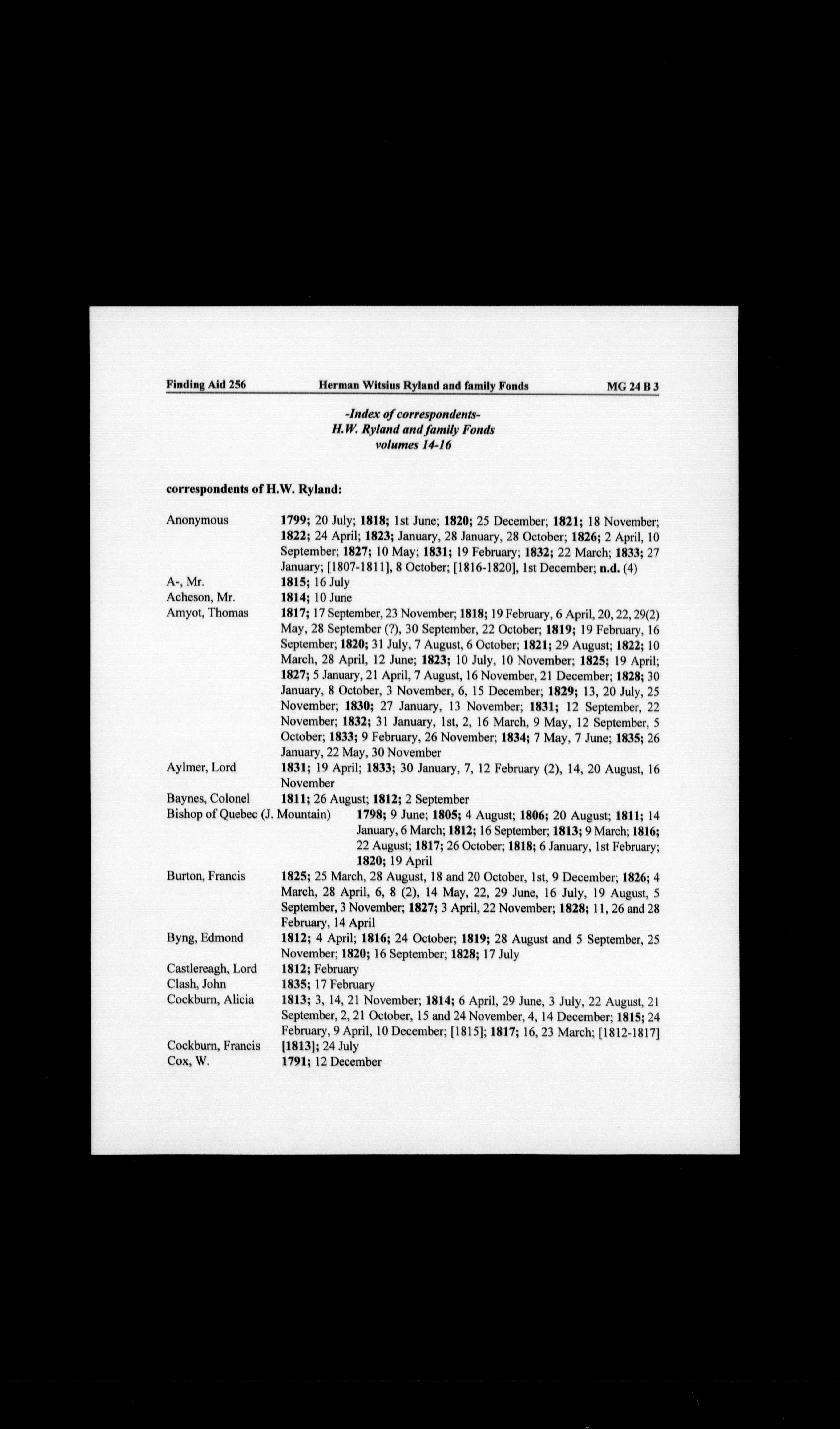 Herman Witsius Ryland and family fonds : H-2955