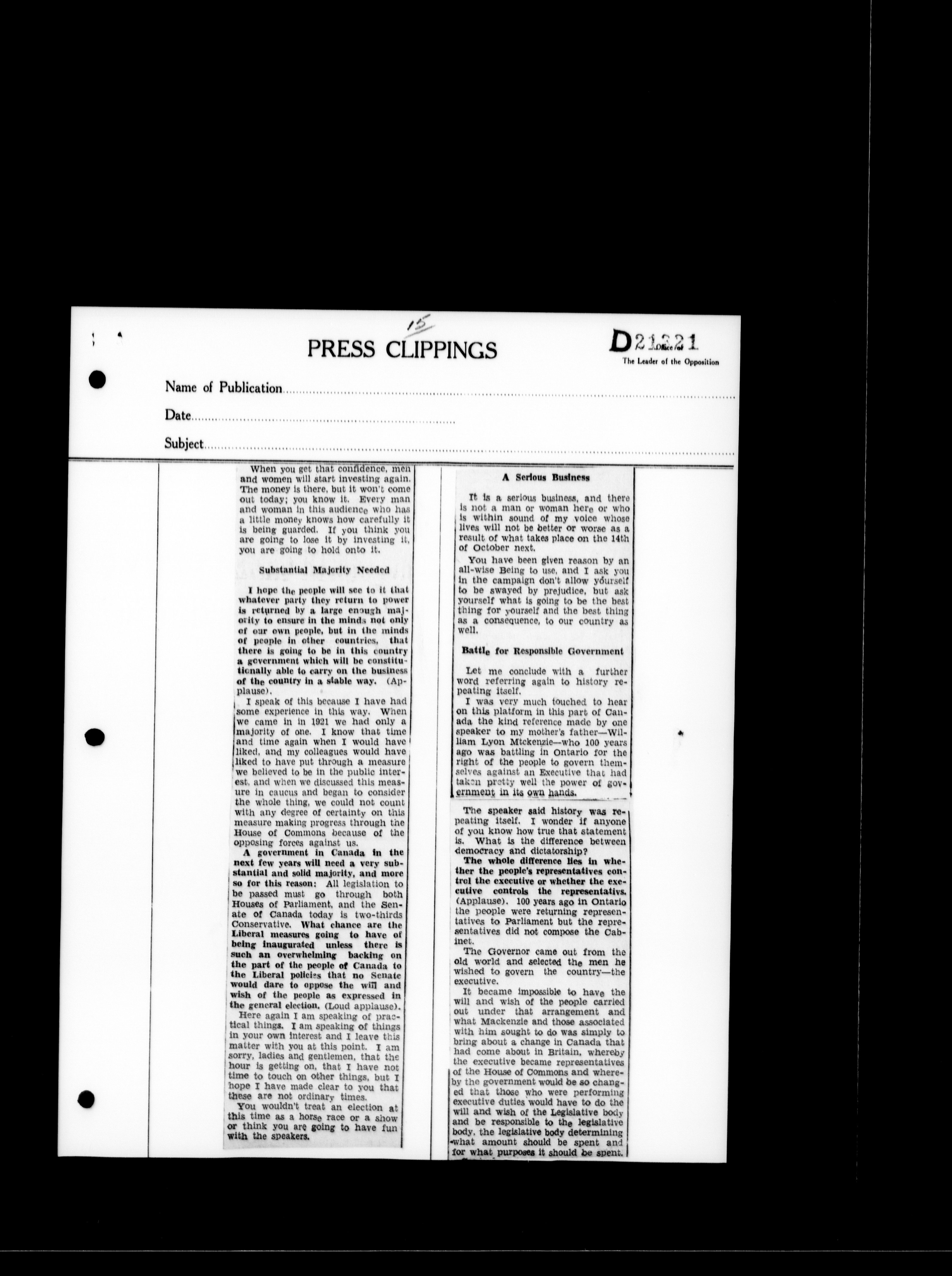 William Lyon Mackenzie King : Speeches (J5) - 2973