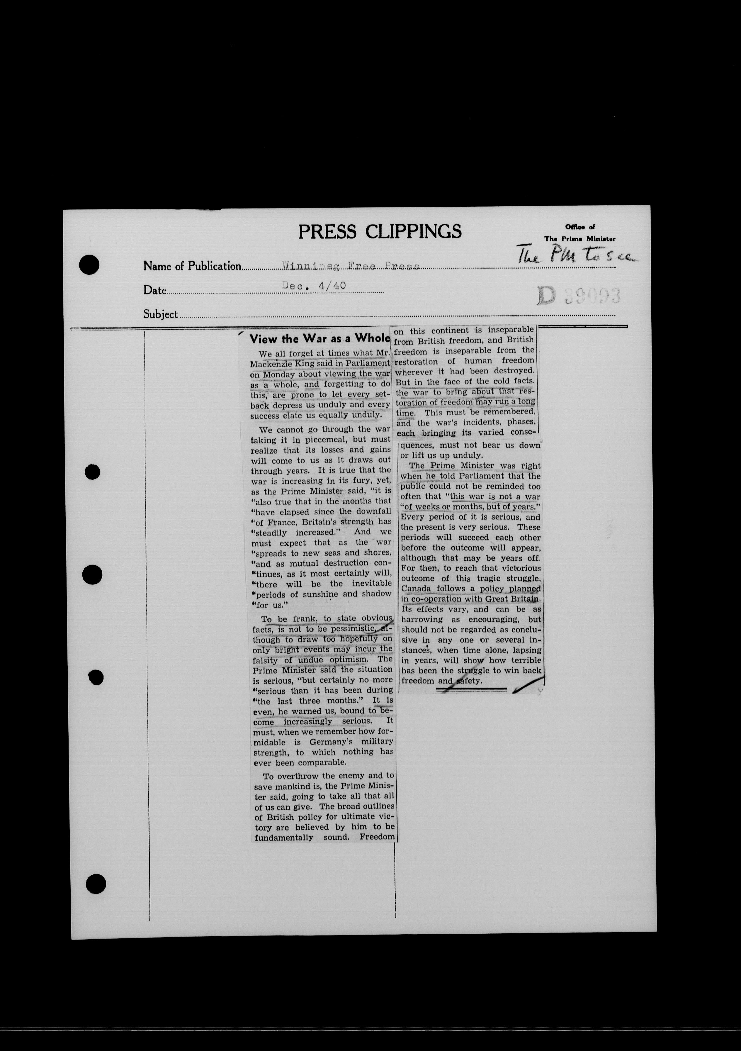 William Lyon Mackenzie King : Speeches (J5) - 2988