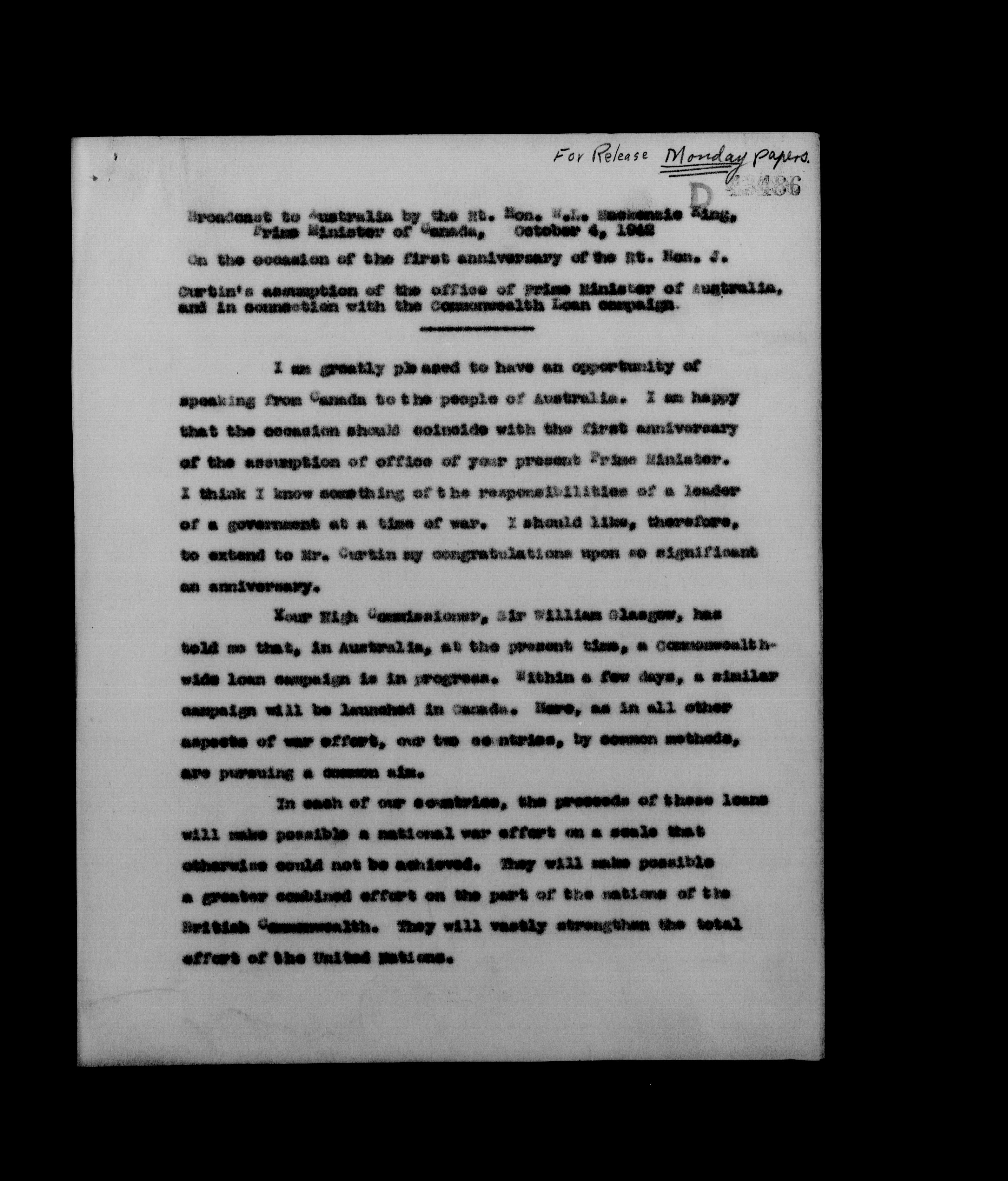 William Lyon Mackenzie King : Speeches (J5) - 3046