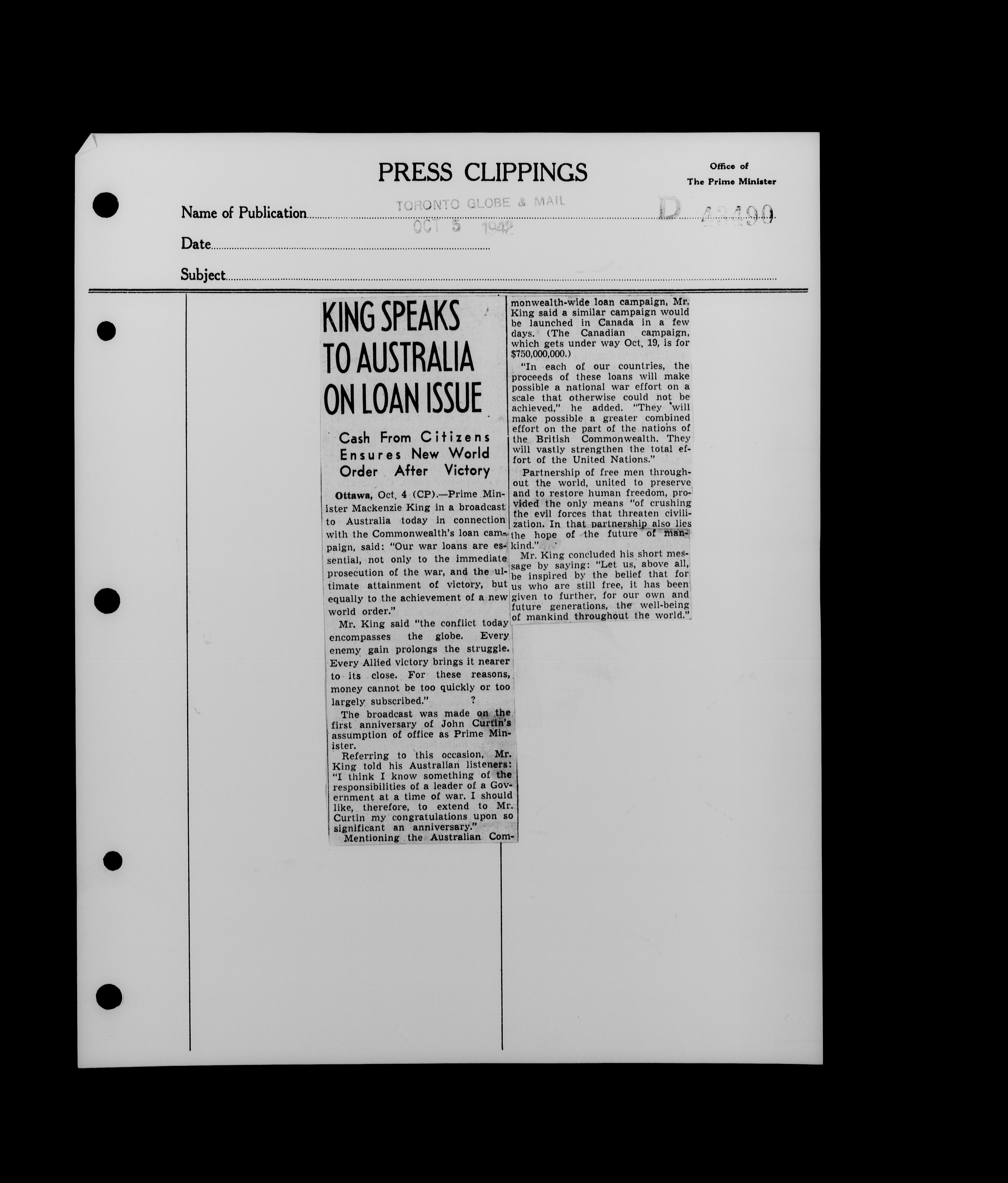 William Lyon Mackenzie King : Speeches (J5) - 3046