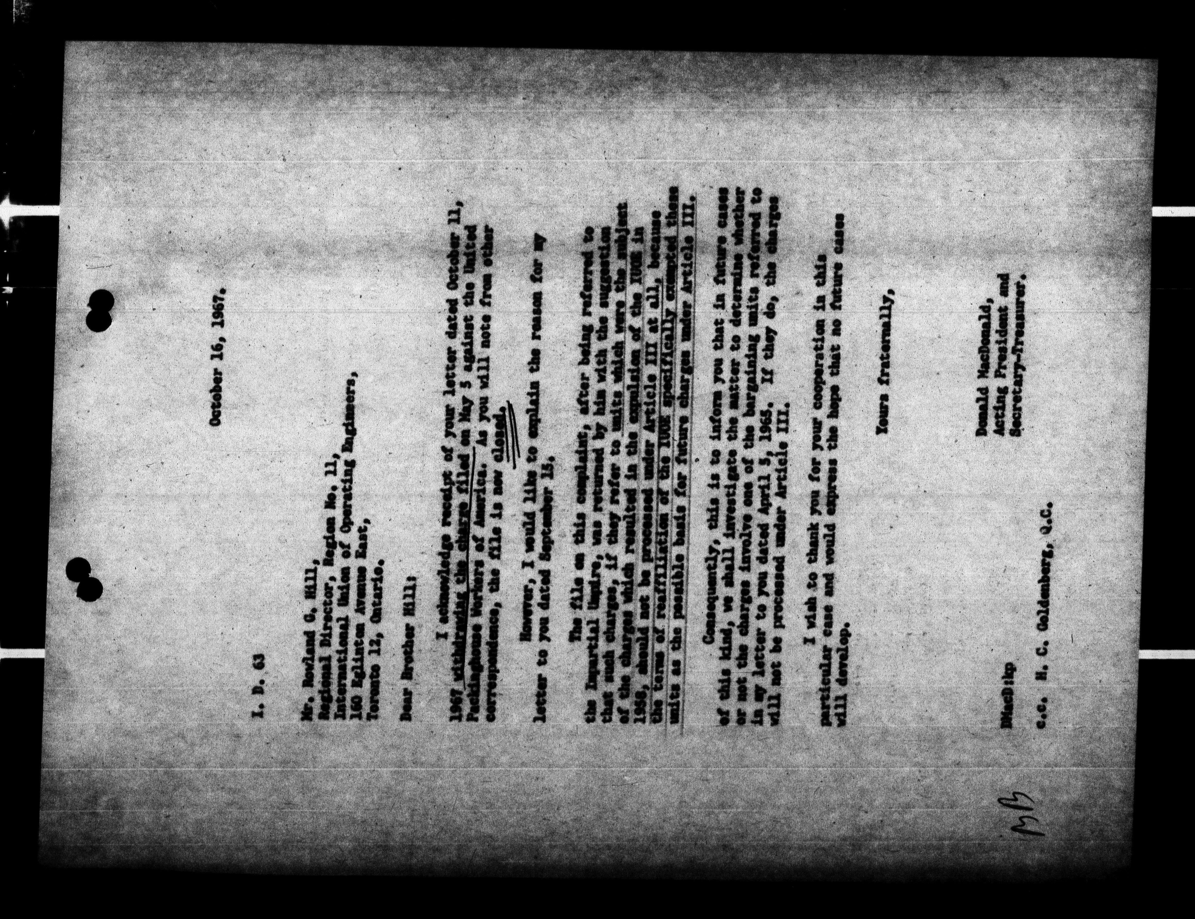 Canadian Labour Congress : Organization Department files : H-305