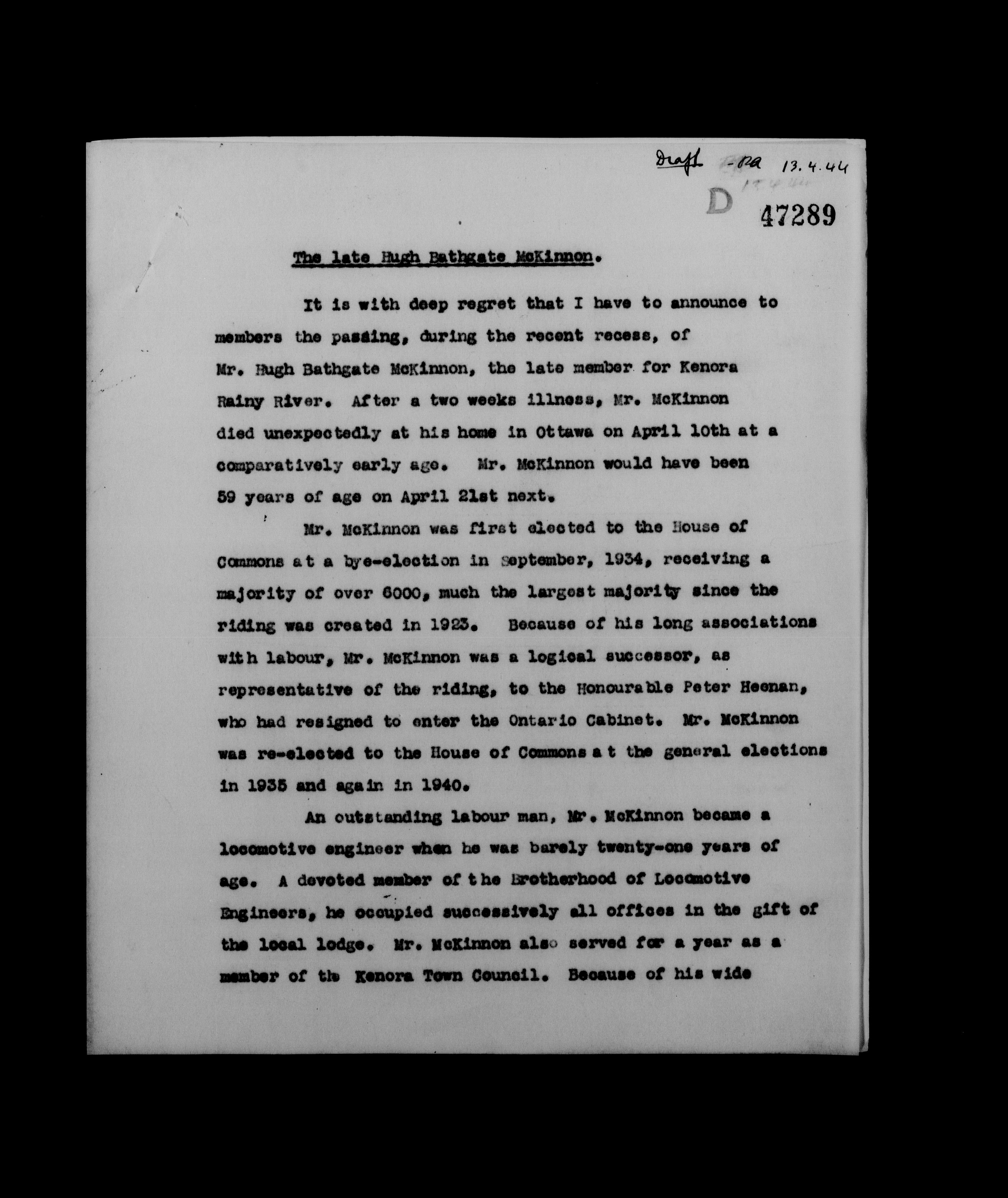 William Lyon Mackenzie King : Speeches (J5) - 3050