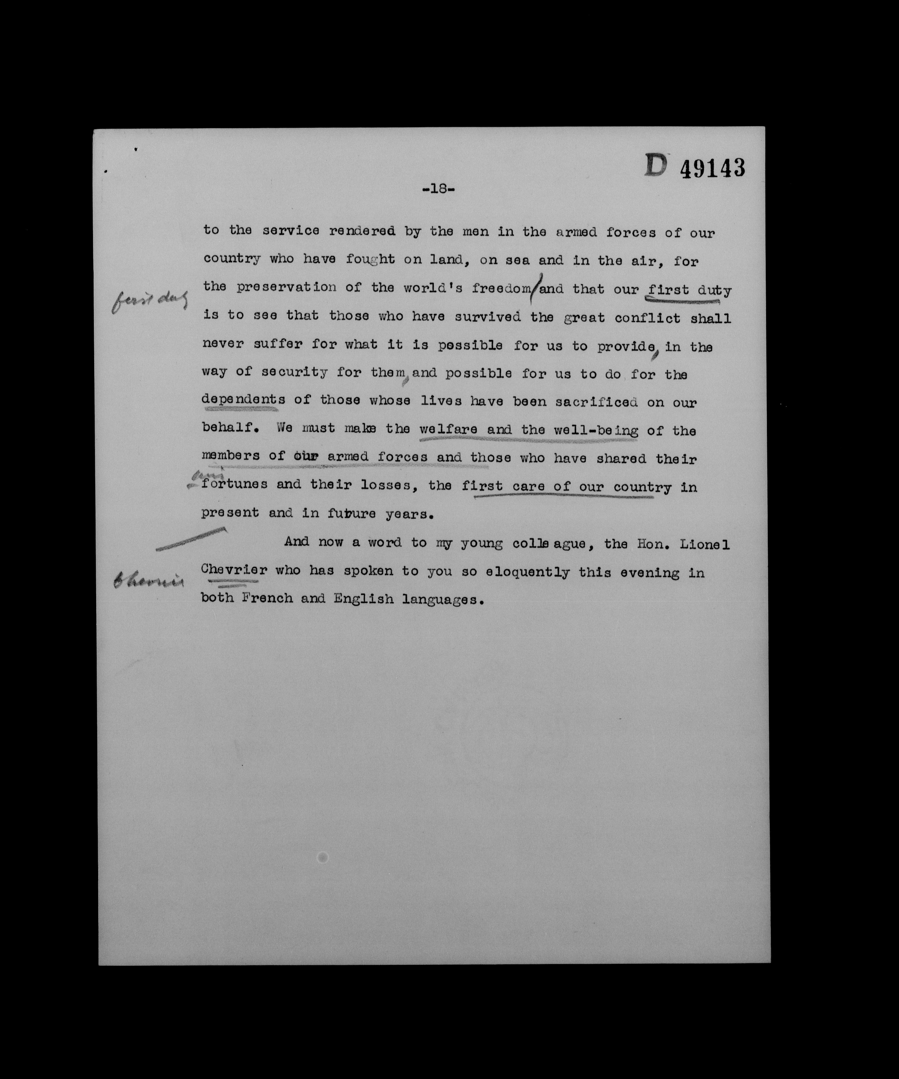 William Lyon Mackenzie King : Speeches (J5) - 3052