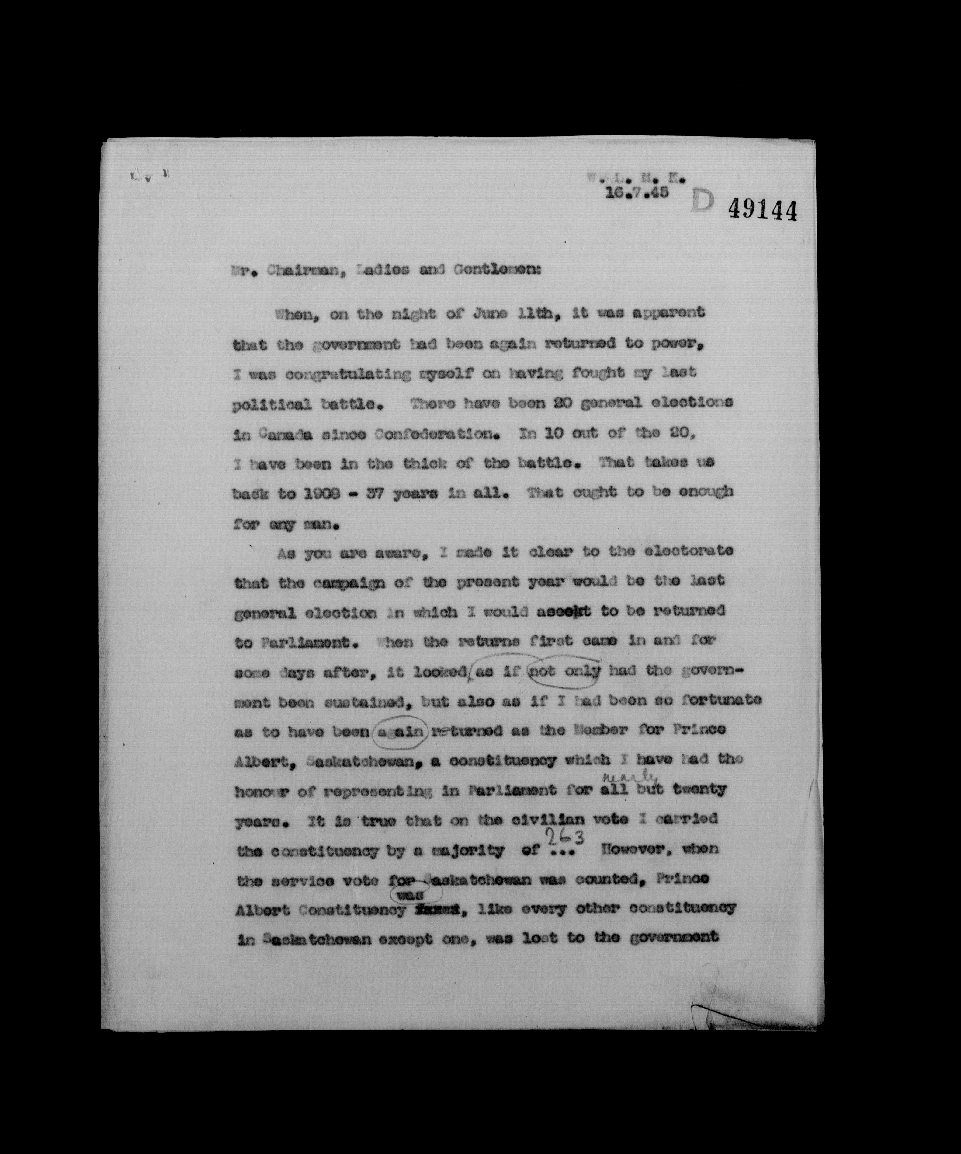 William Lyon Mackenzie King : Speeches (J5) - 3052