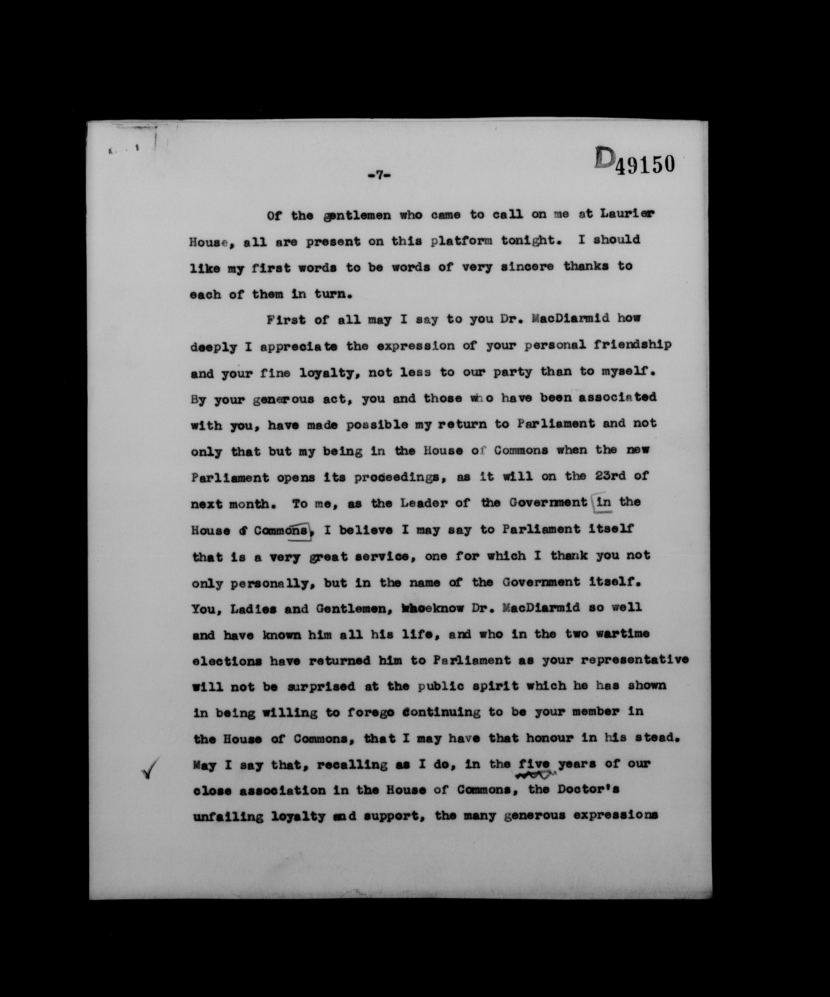 William Lyon Mackenzie King : Speeches (J5) - 3052