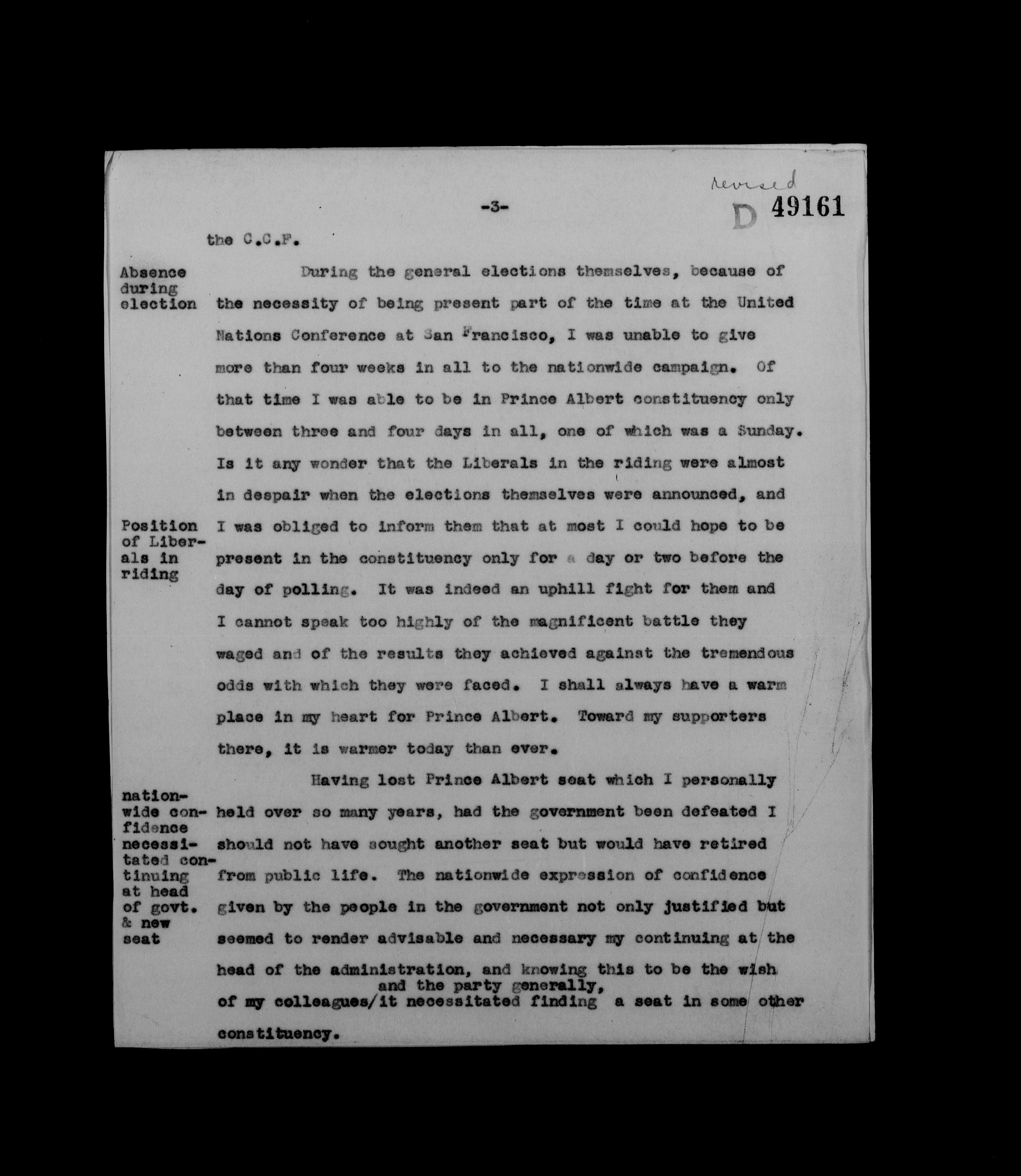 William Lyon Mackenzie King : Speeches (J5) - 3052