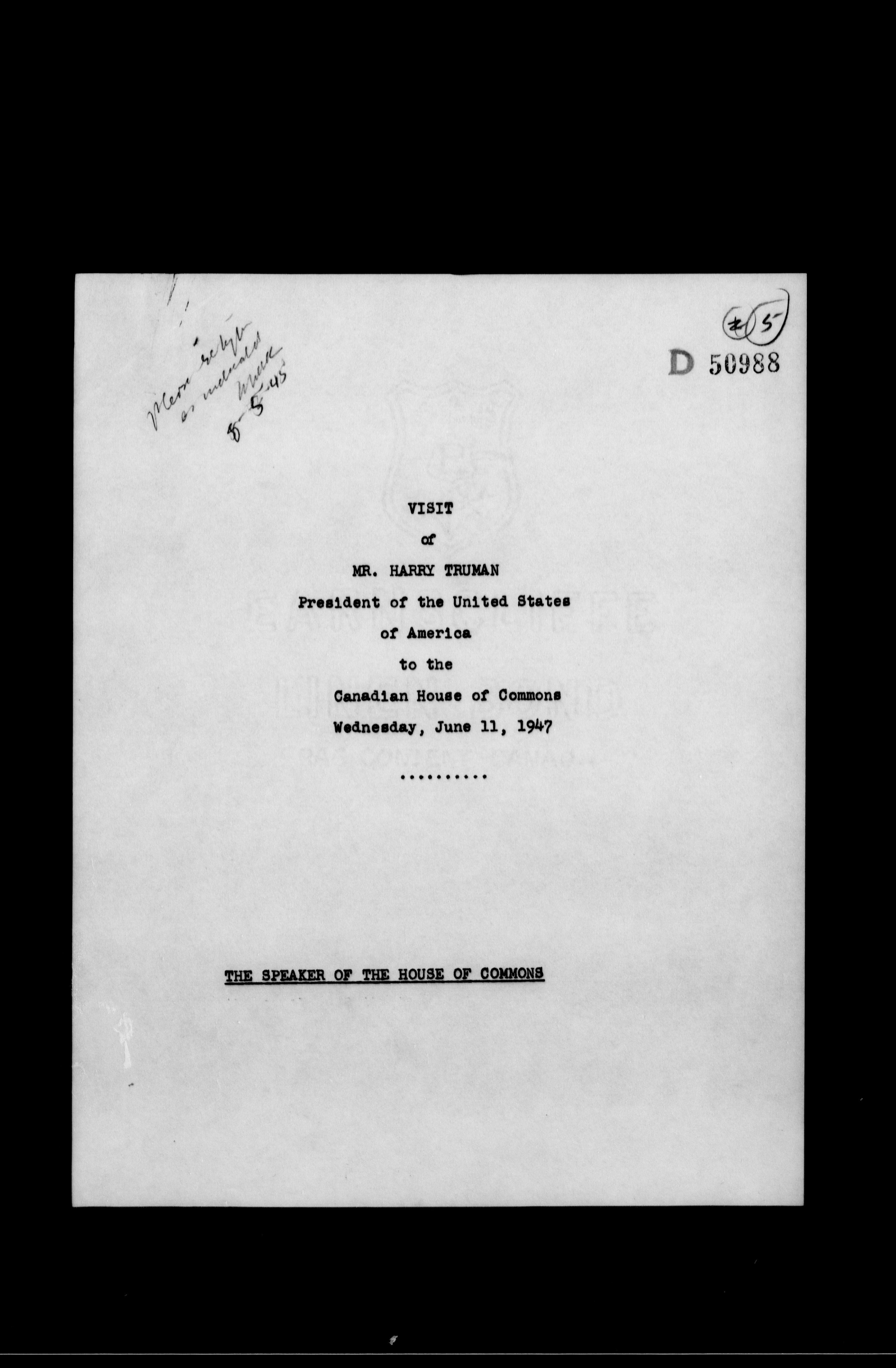 William Lyon Mackenzie King : Speeches (J5) : H-3055