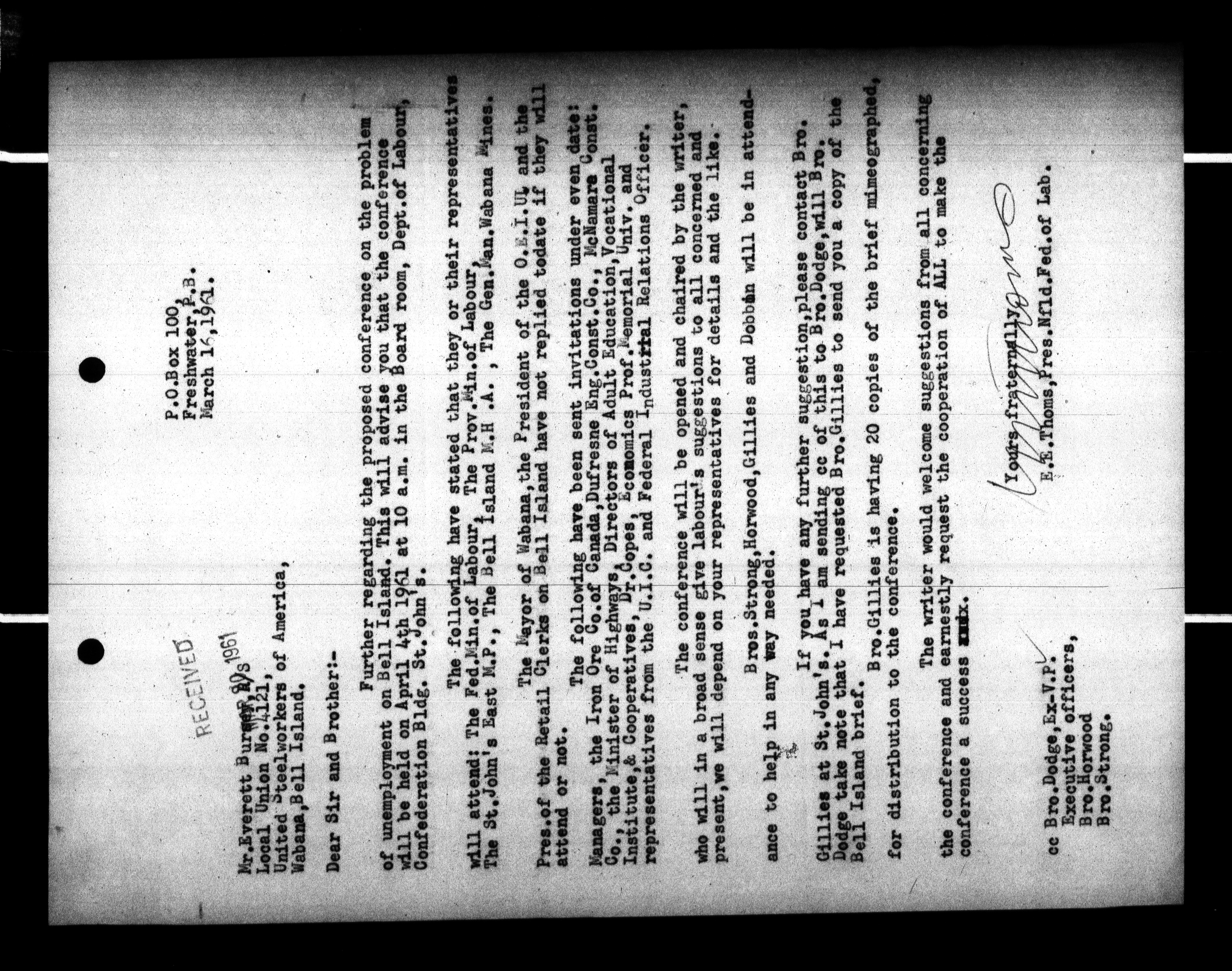 Canadian Labour Congress : William Dodge's (Executive Vice President and Secretary-Treasurer) files - 315