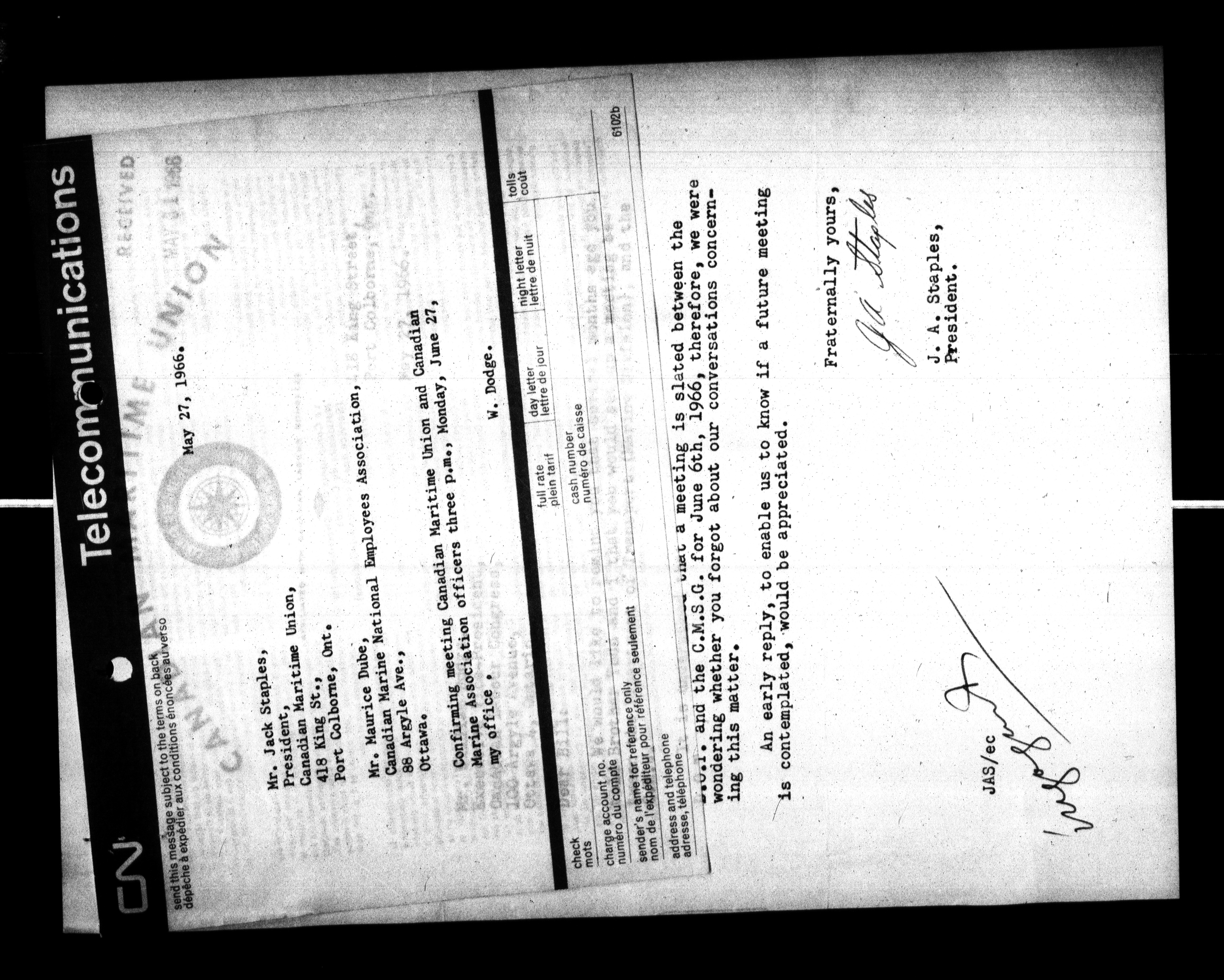 Canadian Labour Congress : William Dodge's (Executive Vice President and Secretary-Treasurer) files - 315